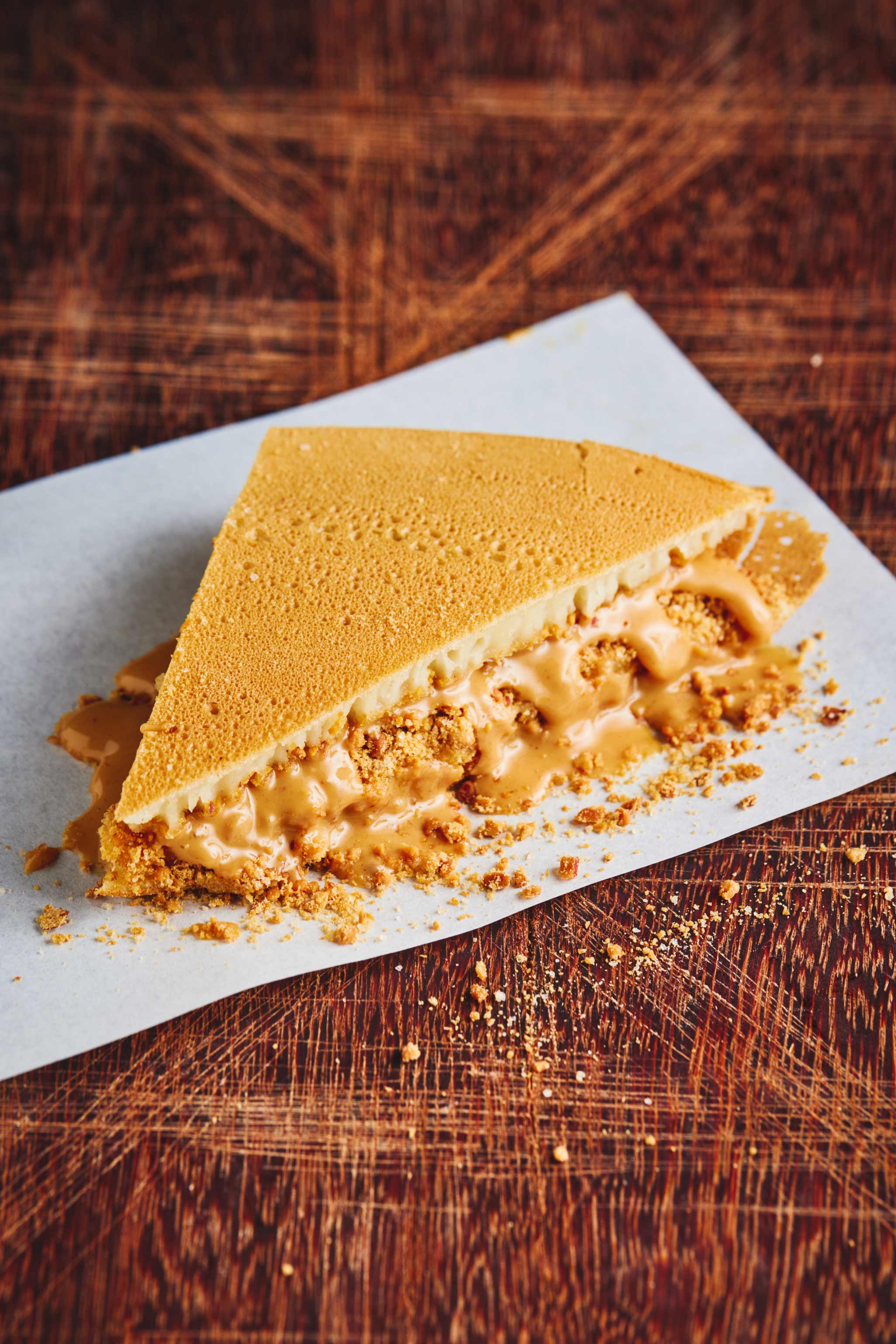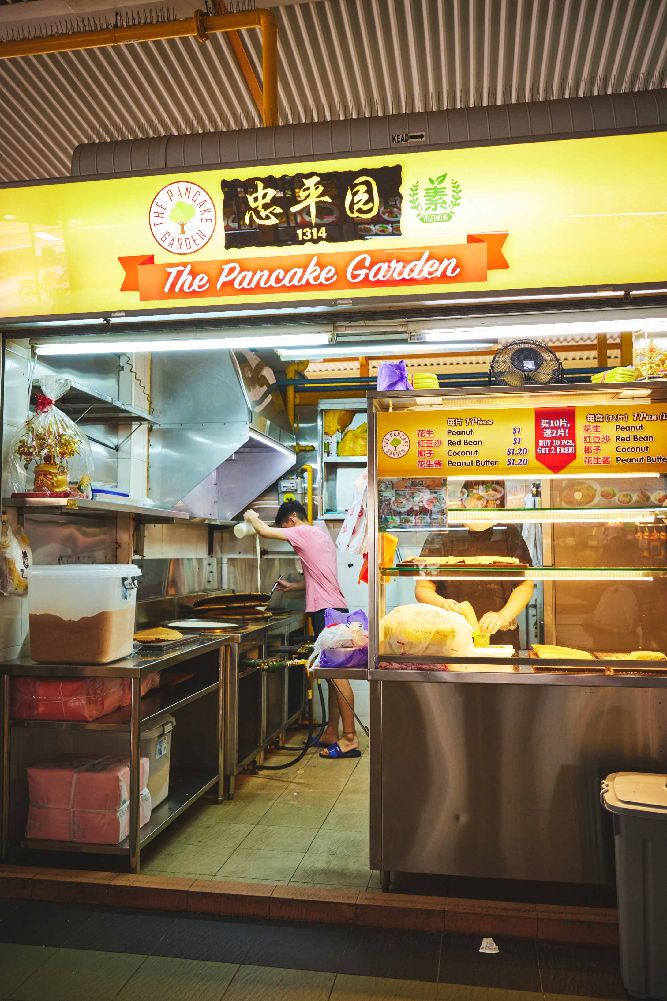 In a sleepy section of Bedok South Food Centre, a queue forms under the glow of a yellow signboard. The Pancake Garden’s freshly-made min jiang kueh is the attraction here, with eager punters waiting for the next batch of pancakes. Believed to have originated in Fujian province, China, this breakfast favourite consists of a thickish pancake folded over ground peanuts, red bean paste or coconut shavings.