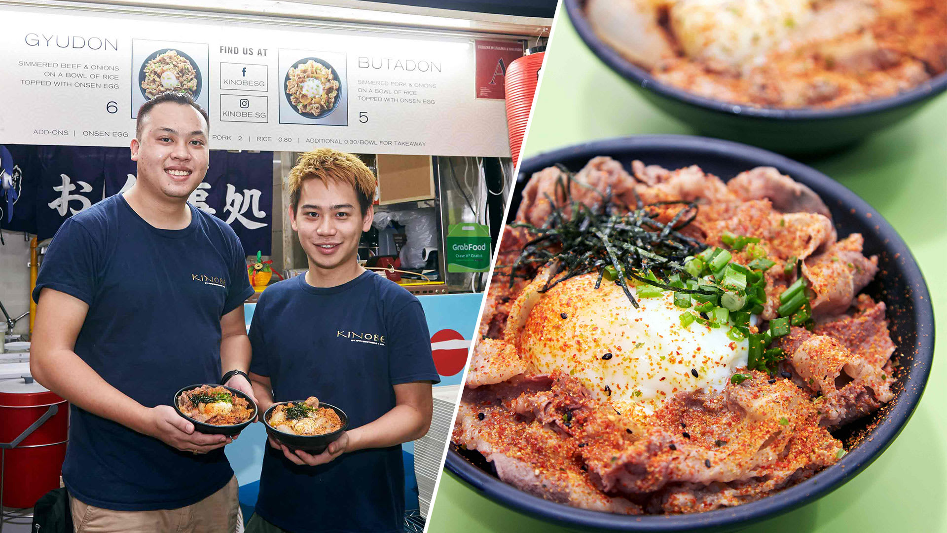 It's a pure coincidence that Amoy Street Food Centre's five-month-old beef bowl player Kinobe sits in the same unit that $10-wagyu-peddling Gyu Nami built their name on before it decamped to a basement unit at the swankier Orchard Gateway mall. Run by two first-time young hawkers, they are fulfilling their teenaged dream of owning a business together, selling beef and pork rice bowls inspired by co-owner Genji Lee’s frequent trips to Japan.