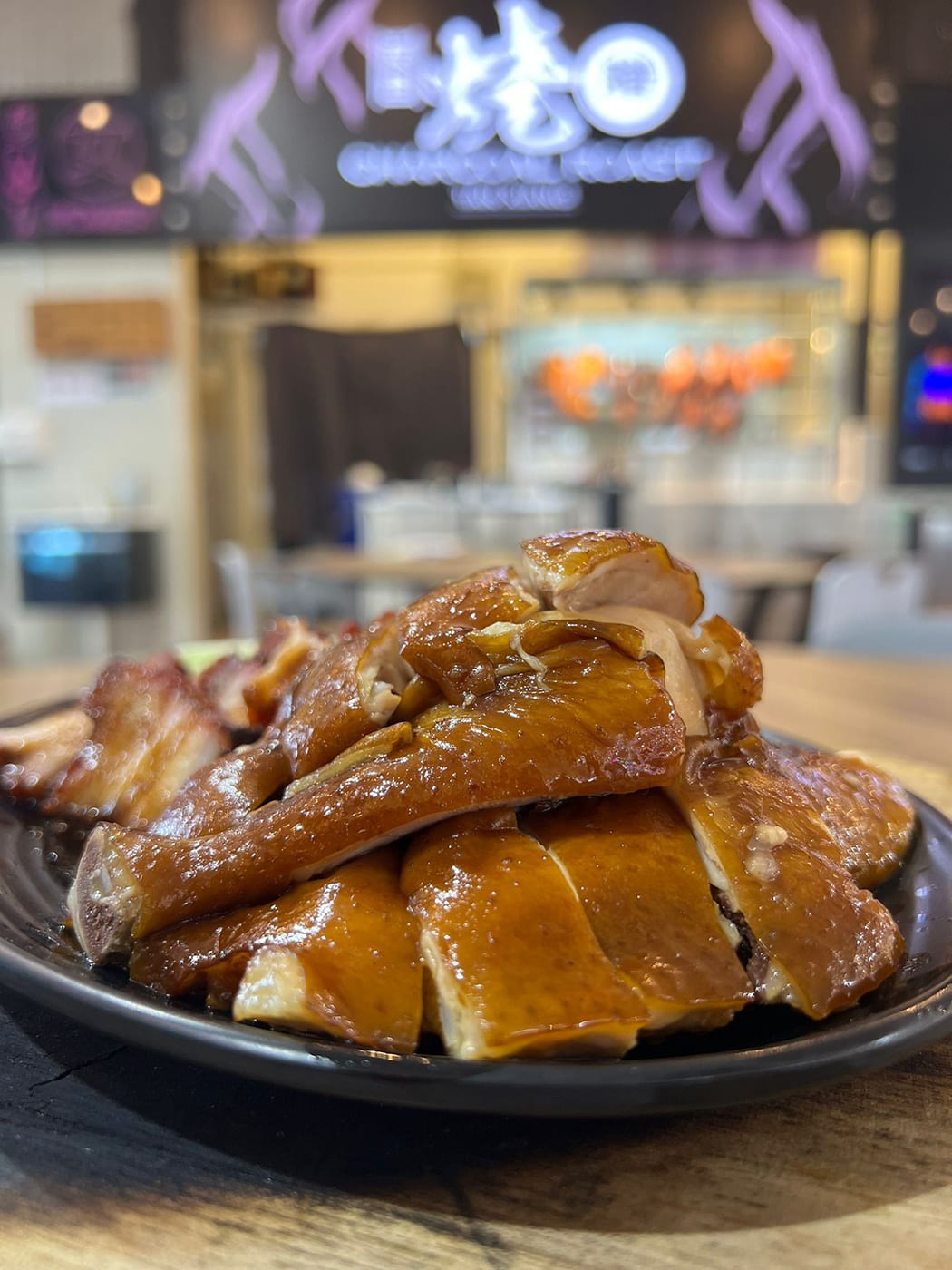 It offers Cantonese-style charcoal-roasted meats like siew yoke, char siew, roast duck, as well as soy sauce chicken.