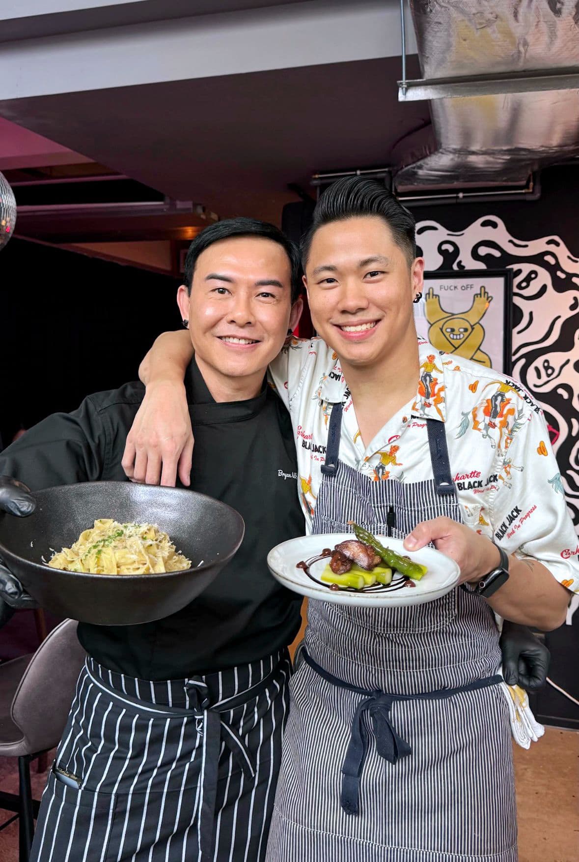 Over the weekend, some fans had the chance to taste Mediacorp artiste Bryan Wong’s cooking for the first time. The 53-year-old celeb, who hosts food show Old Taste Detective (S5 starts in Nov), held his first ever restaurant pop-up in collaboration with Timothy Ong, the chef-owner of hip craft beer bar gastropub In Bad Company.