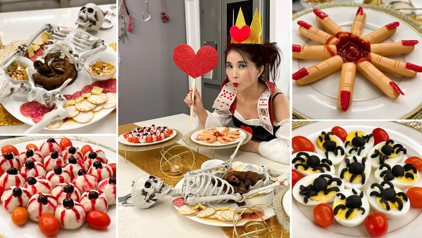 Yummy factor: Xiuhuan loves cooking and entertaining, and for Halloween, she put together a ghoulish feast featuring bloodshot eyeballs (cuttlefish balls with olives), a charcuterie board complete with braised intestines, spider deviled eggs, and, um, severed fingers for friends and family. In case you’re wondering, those are chicken franks with chilli nails. How creative.