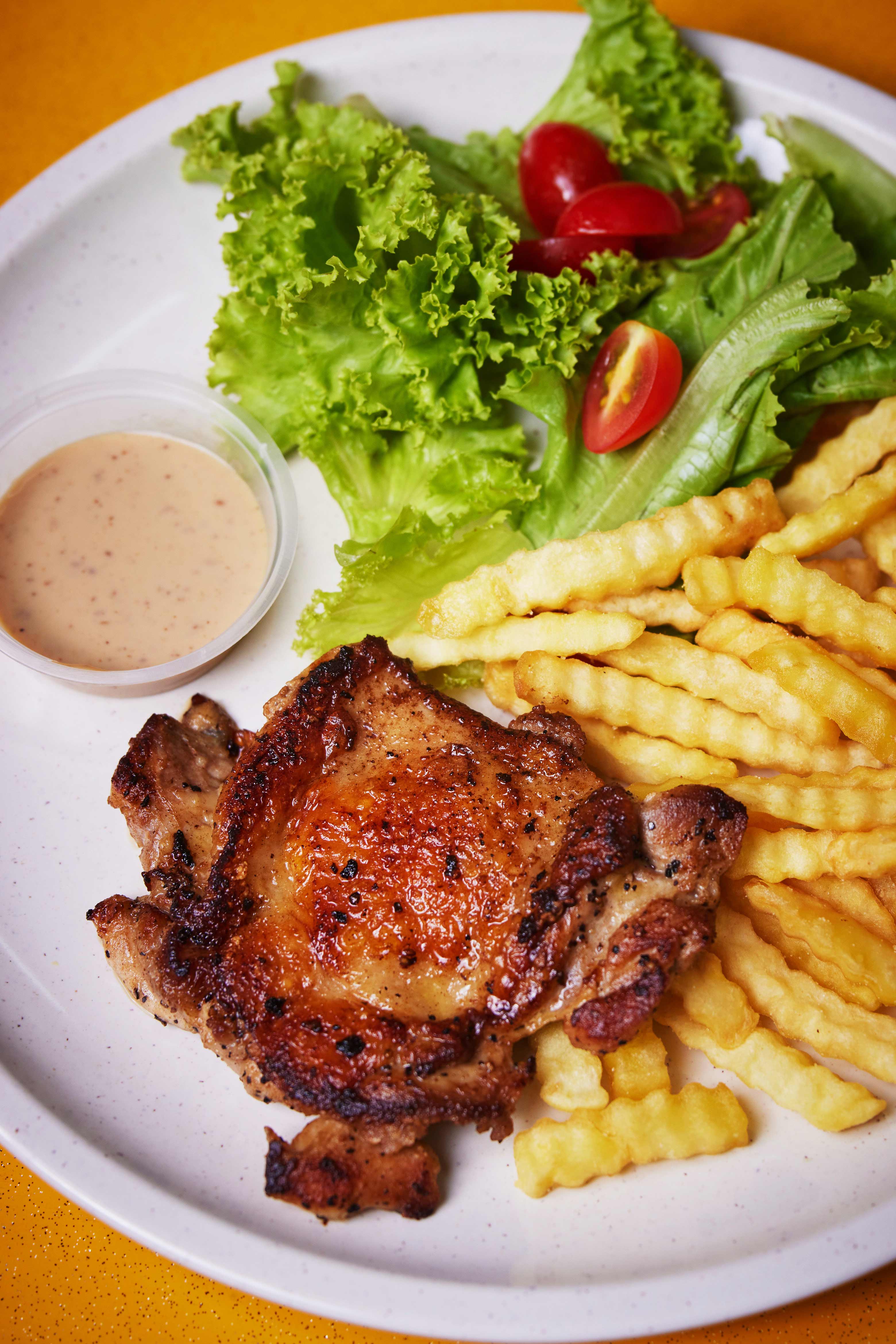Well-seasoned chicken thigh boasting strong, smoky flavour from the griddle and addition of liquid smoke to the meat before cooking. The chook is satisfyingly succulent, though we found the butterflied portion – served with fries and salad – a little petite and not quite filling enough for hearty eaters.