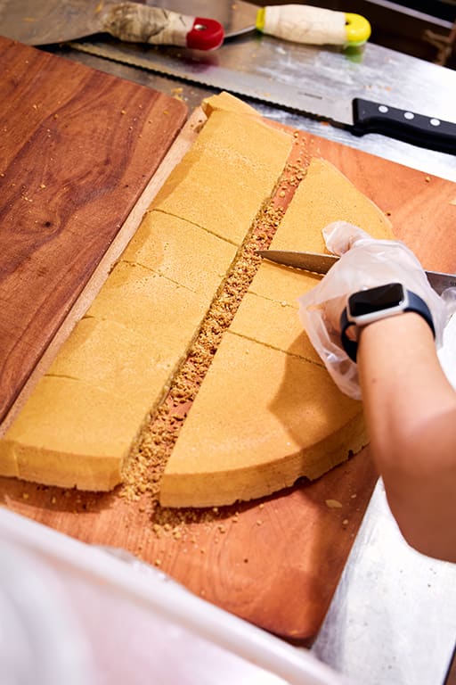 In an earlier interview with 8days.sg, the couple’s mentor Billy Ng of Granny’s Pancake told us that a good slice of min jiang kueh is “fluffy and soft on the inside and crispy on the outside. It can’t stick to your teeth”.