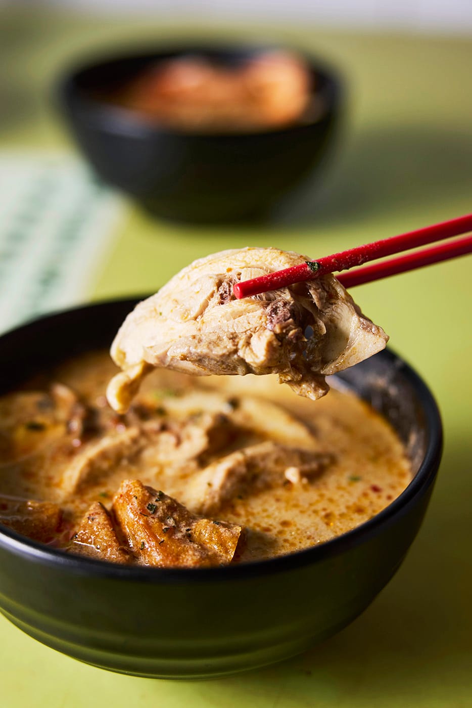 For something a little heartier, go for the chicken drumstick laksa, which comes with three meaty pieces of succulent poached chicken drumstick.