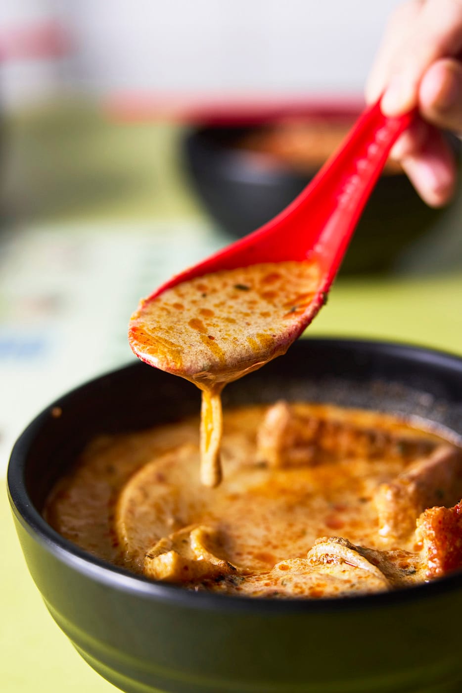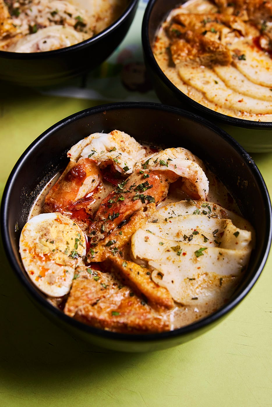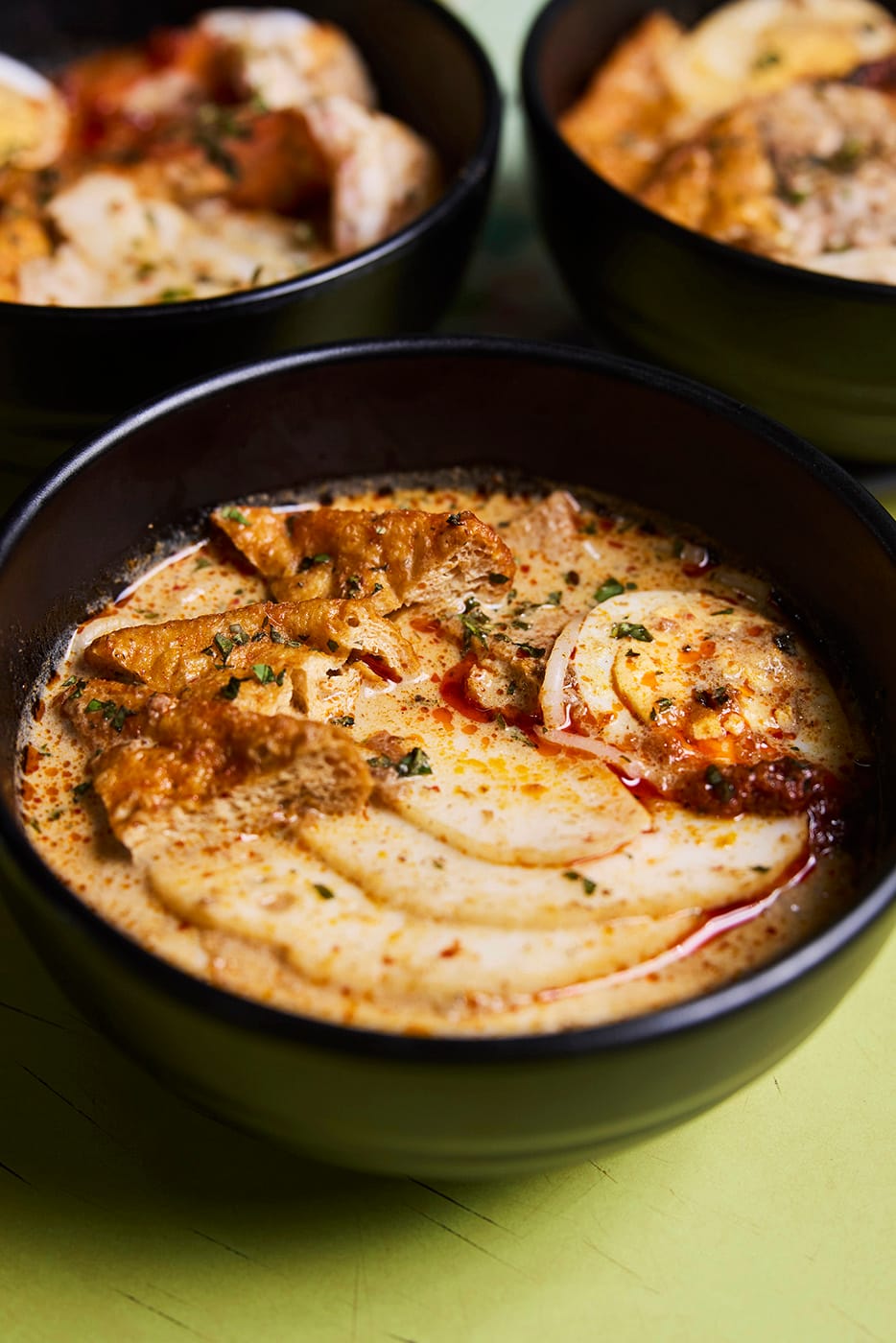 Umami and creamy, this laksa features a mildly spicy gravy that’s rich but not overly lemak, fragrant yet balanced — extra delish when mixed with the punchy sambal.