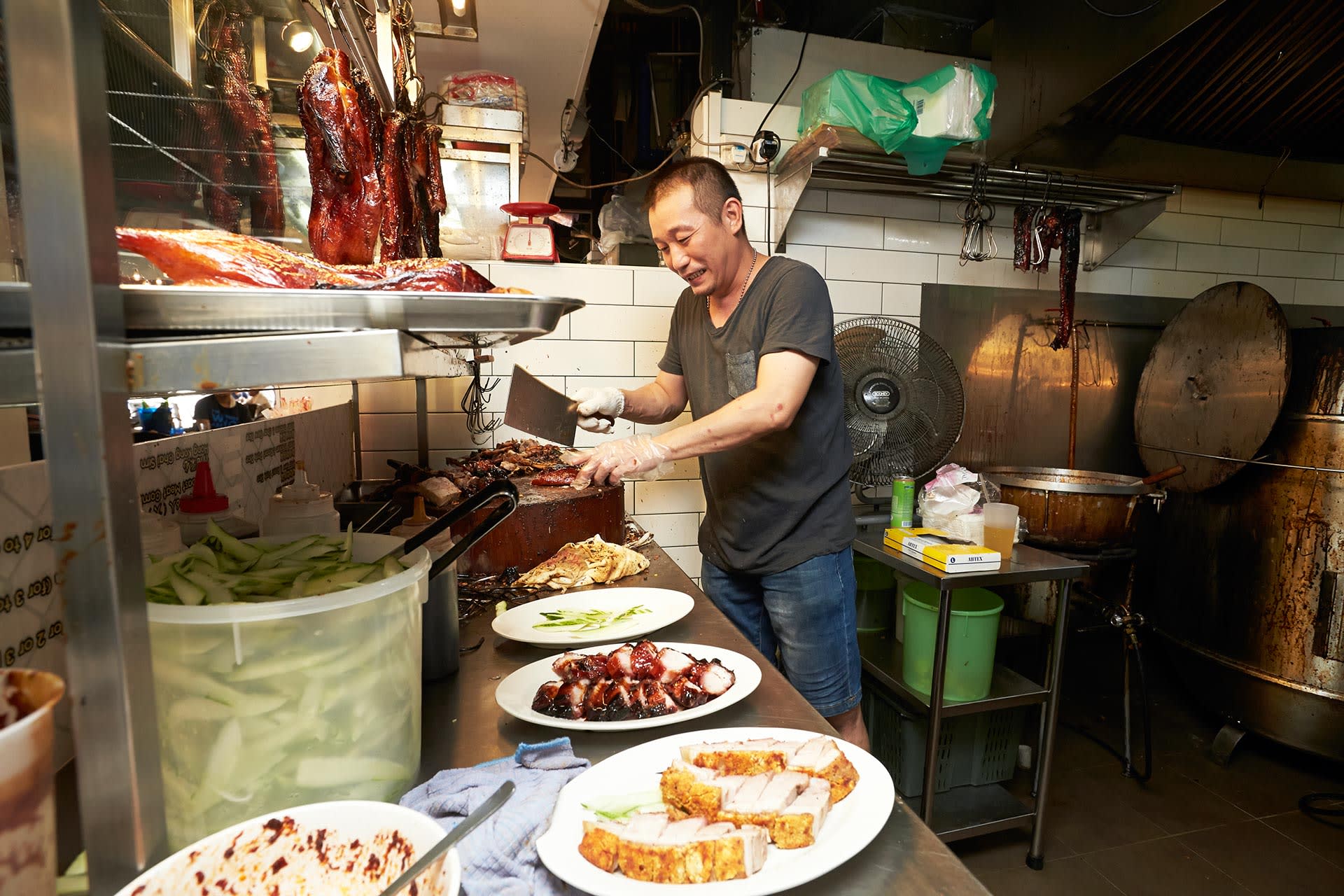 Articulate chef-owner, Martin Ong, 46, was originally trained in Western cuisine (he had worked at Jack’s Place and The Canopy Café at Marina Bay Golf Course). However, he later developed his own technique for roasting pork, which he says took years of experimenting to perfect. He even modified his three ovens to cook 100kg of frozen Spanish pork belly a day at his stall. “I decided to sell char siew and other Chinese roast meats ’cos it’s easier than cooking Western food,” explains Martin.
