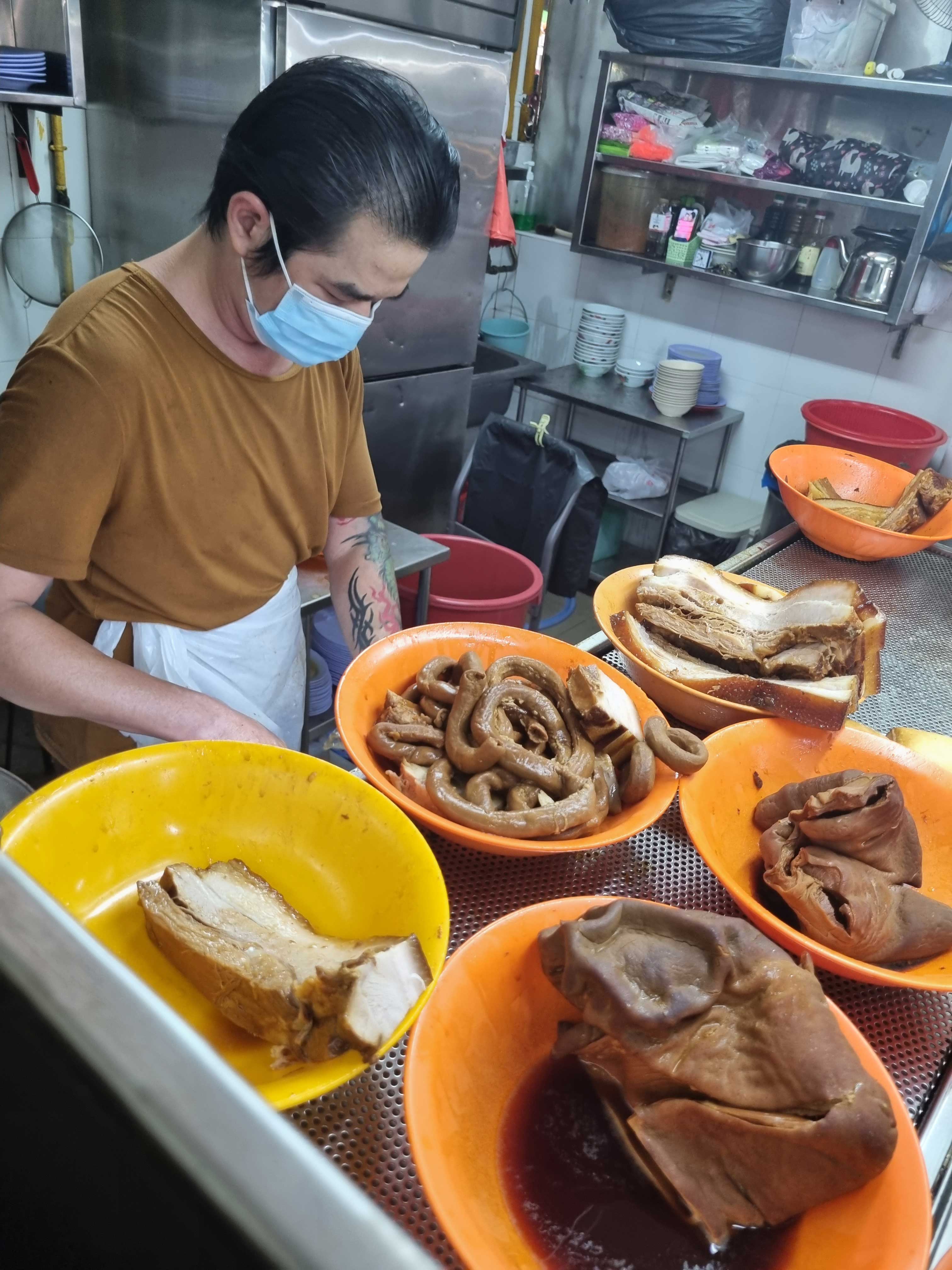 He shares that the $2.50 sets only make up a “small portion” of his daily sales, as most customers tend to order more offal. As for how many bowls he sells in total, he replies offhandedly: “Never count. But we sell around nine packets of kway a day – each packet is 3kg.”