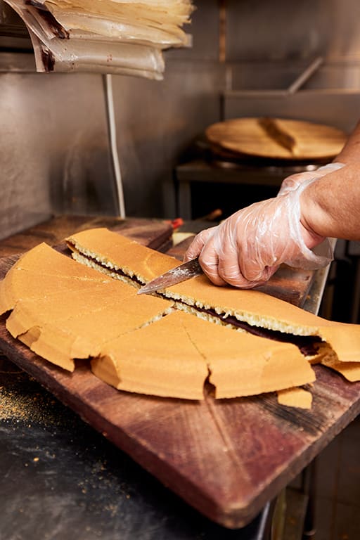 A good slice of min jiang kueh, he says, “must be fluffy and soft on the inside and crispy on the outside. It can’t stick to your teeth.”