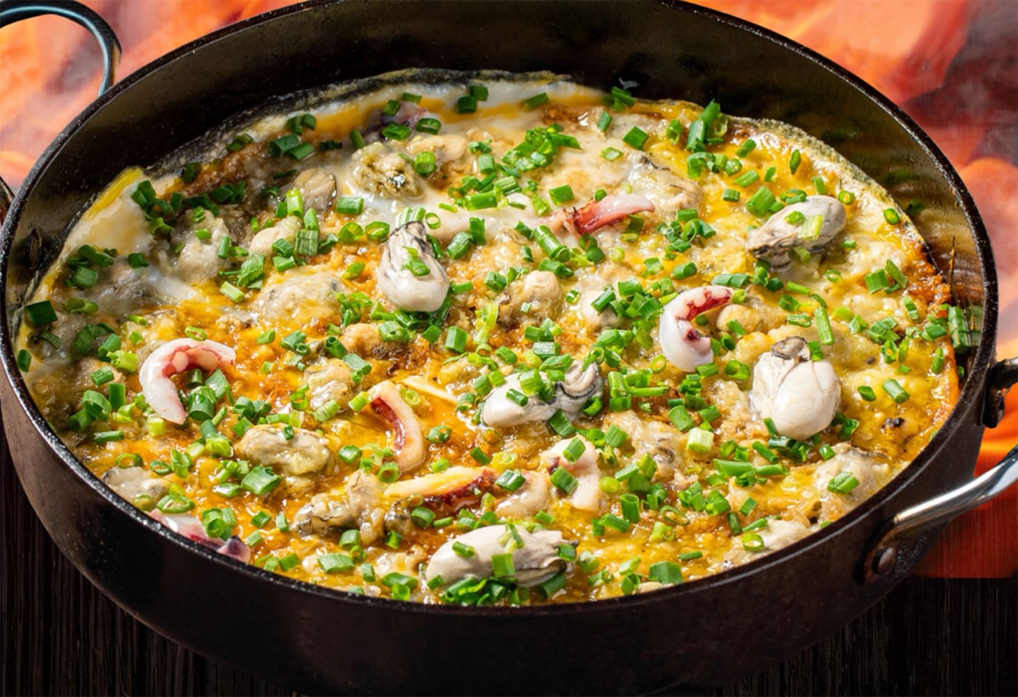 Fried egg dish with a crispy crust and molten centre.