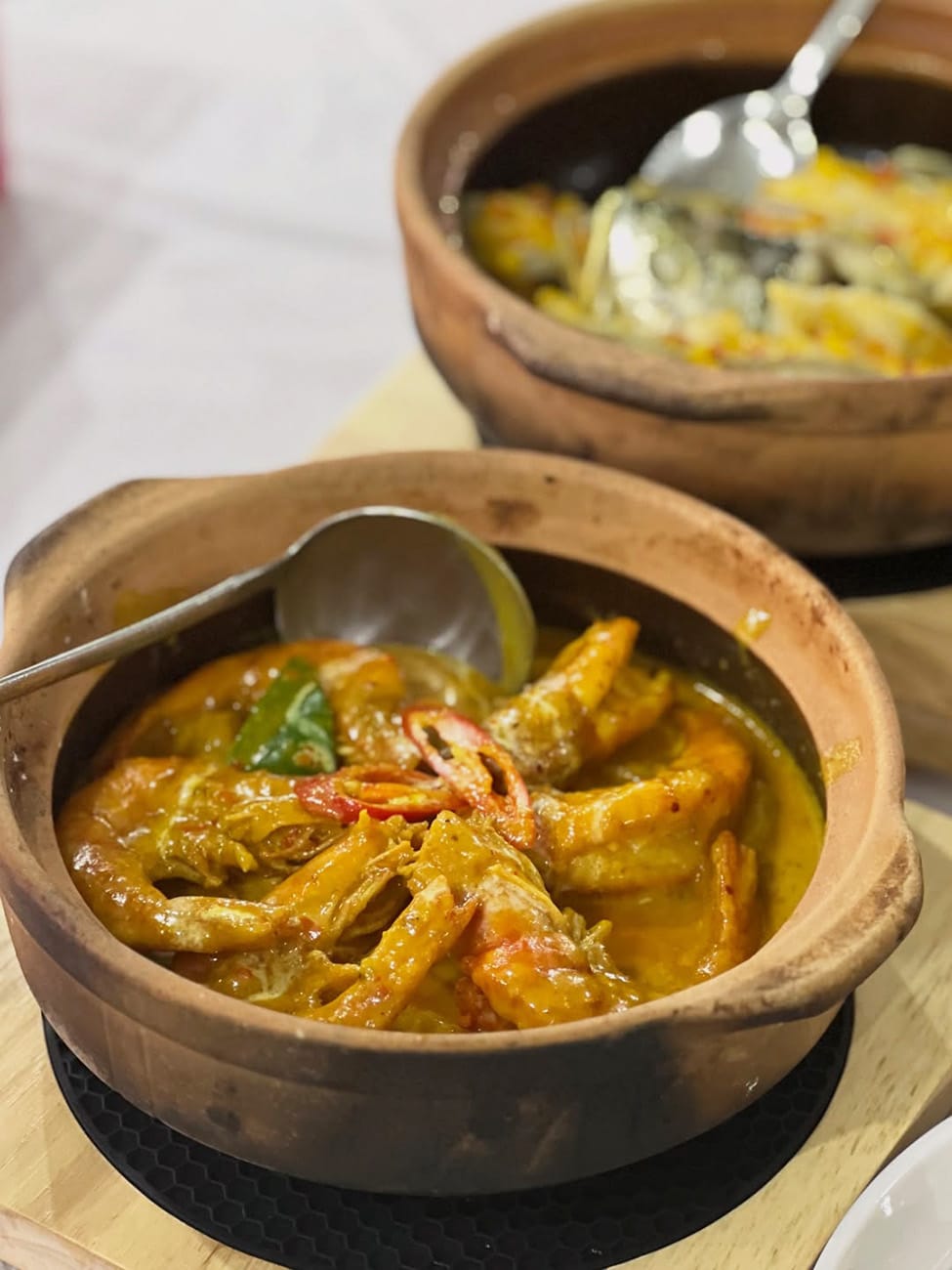 About 90 per cent of Dudu’s dishes are cooked in claypots, many heated to around 300°C, and some dishes “dry-steamed” at 500°C without water — techniques that generate intense fire, smoke, and heat. This made typical hawker or food court stalls out of the question.