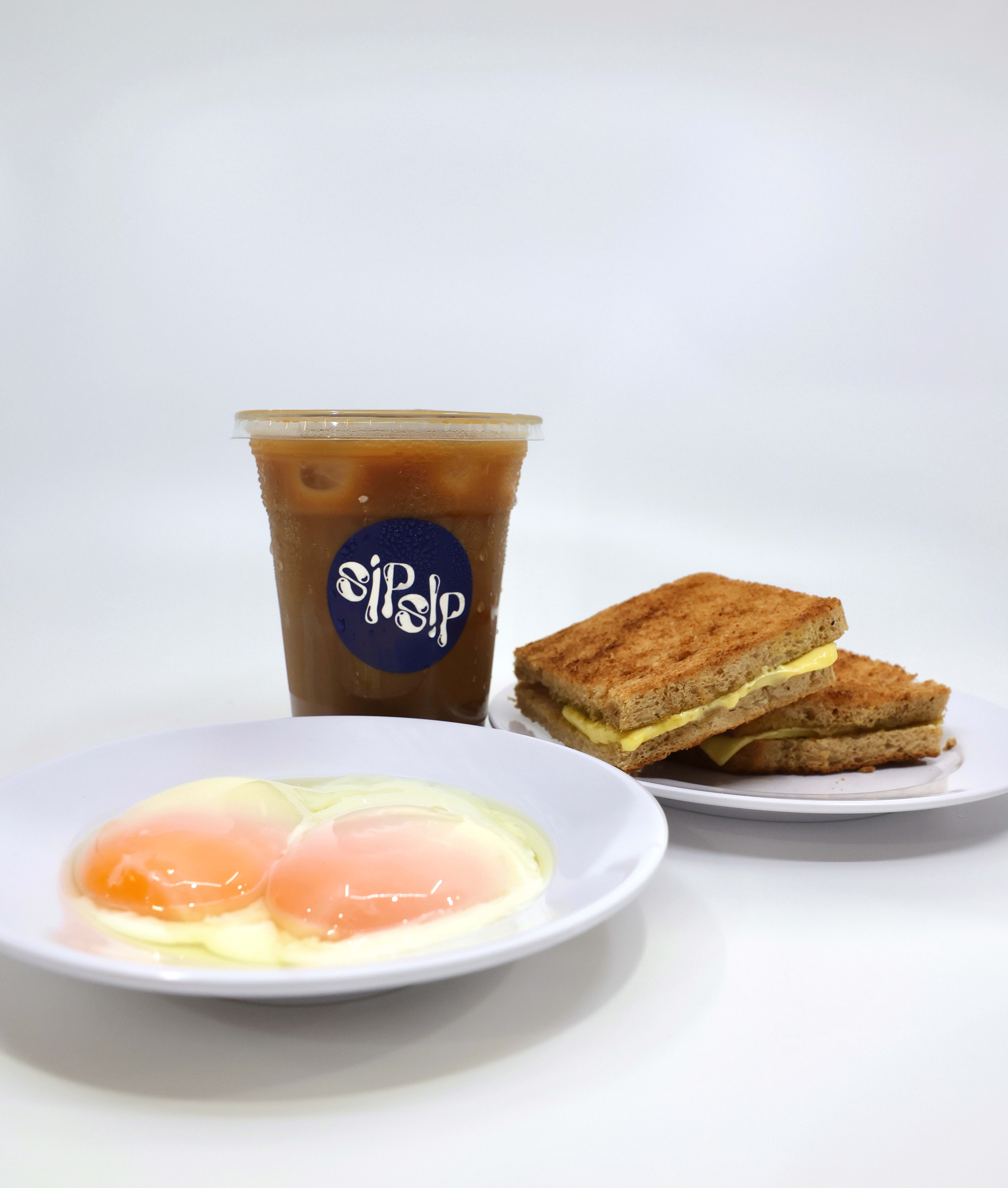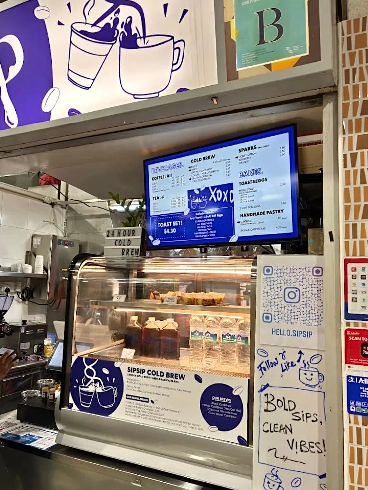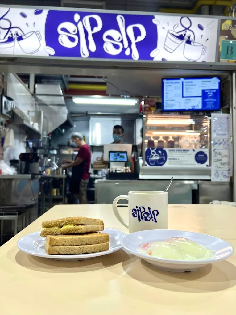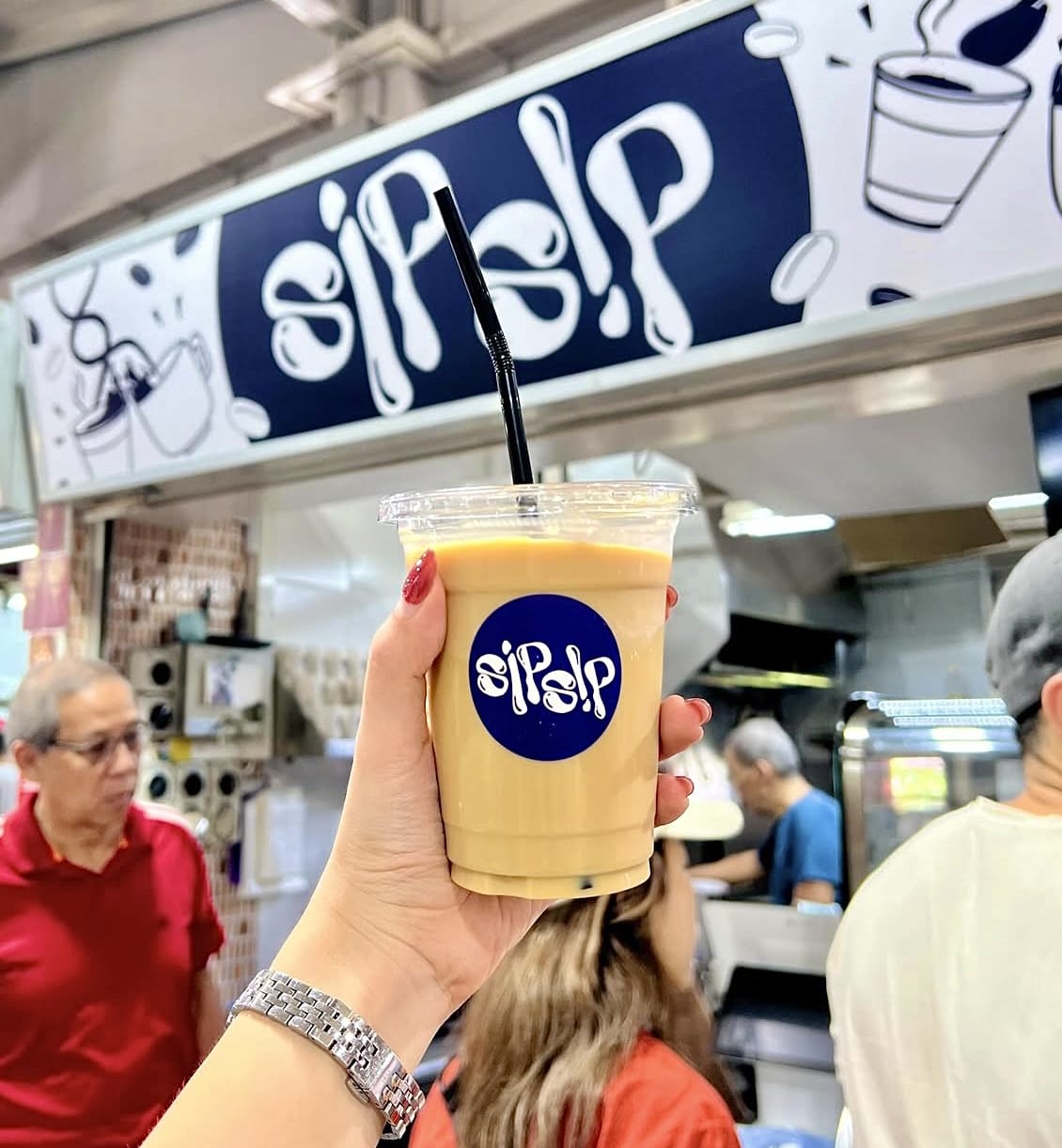 A few doors down from popular shio pan stall Butter Town at Holland Drive Food Centre is new drinks stall Sip Sip. Here, you’ll be greeted with an unusual sight: on one side of the stall, Wong Teck Thang, 62, brews kopi O the traditional way using a sock and pot. On the other, his son Norris Wong, 35, serves cold brews made with Arabica beans and homemade bakes like Basque cheesecake.