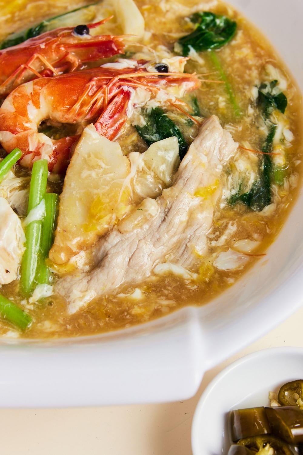 The comprehensive menu features classics like black pepper crab, salted egg sotong and prawn paste chicken, as well as less common items such as a selection of claypot soup, poached kampung chicken and KL Hokkien mee. Prices for carb dishes start from $5 for a plain salted egg fried rice.