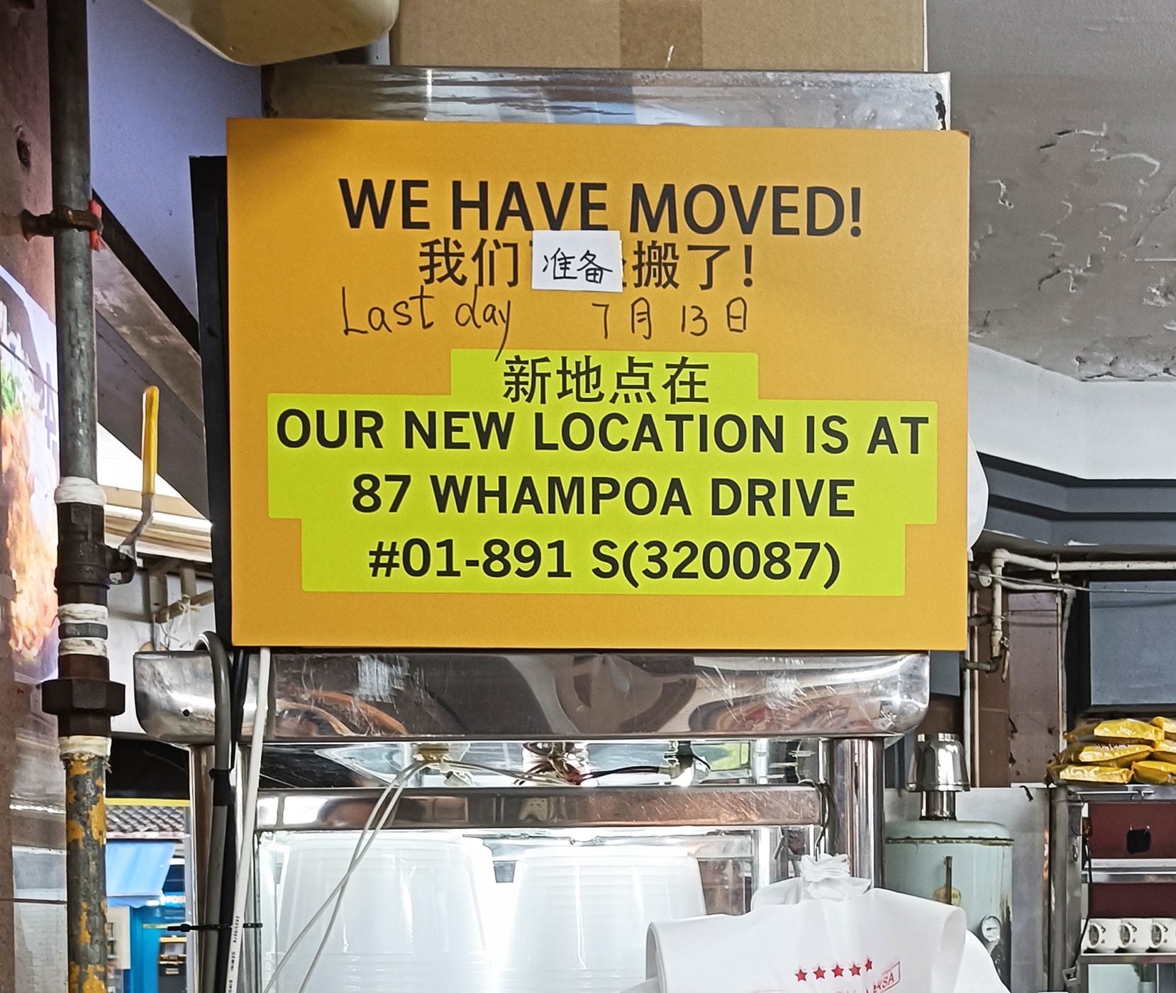 Their last day of operations in Toa Payoh is July 13 and they will open for business in Whampoa on July 16.