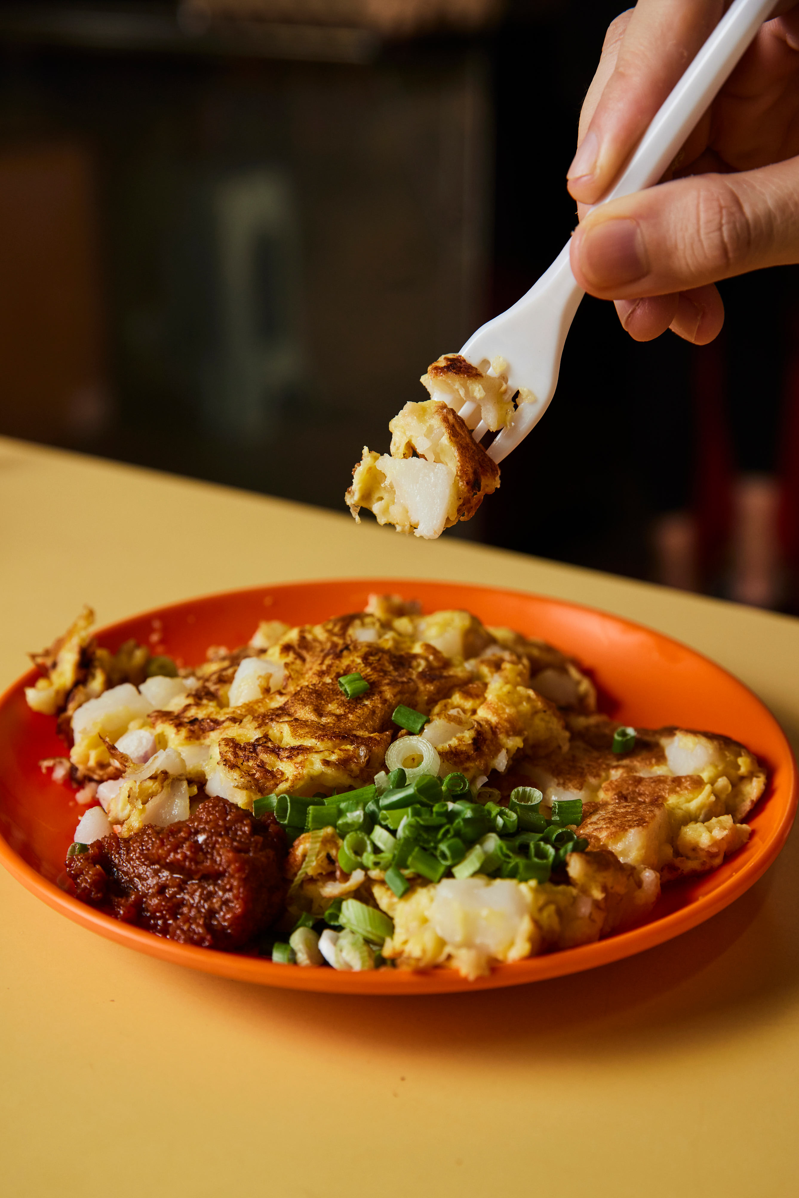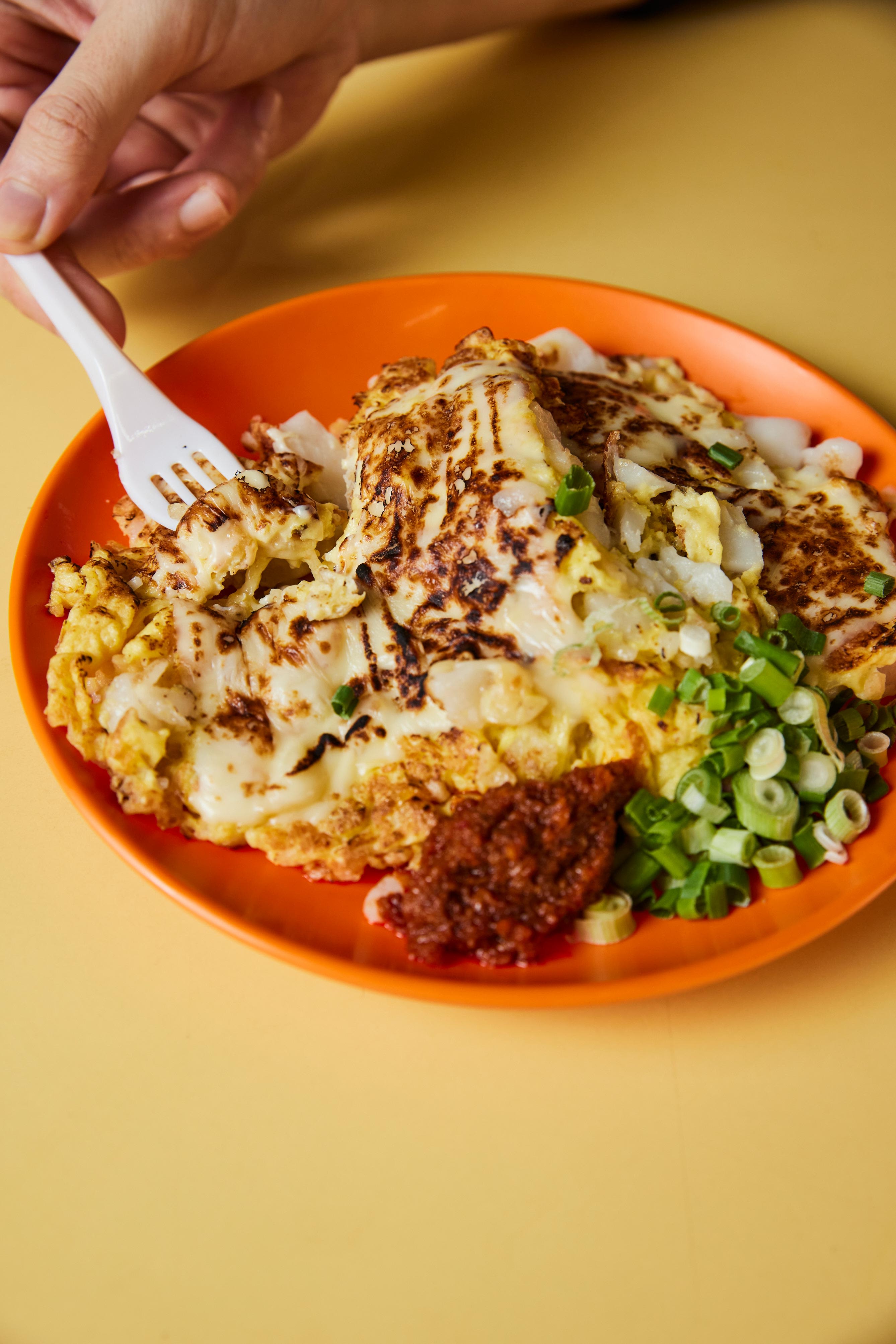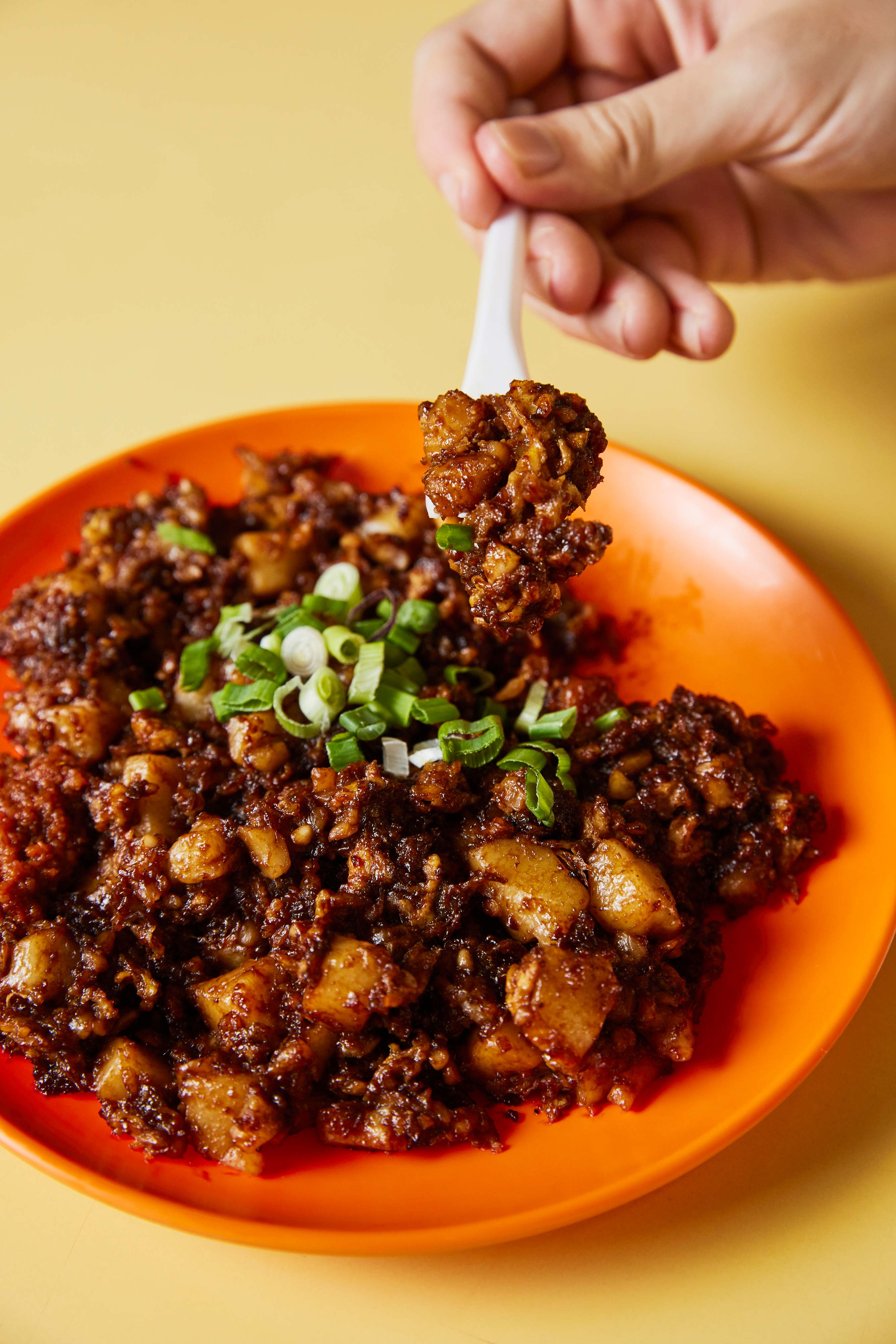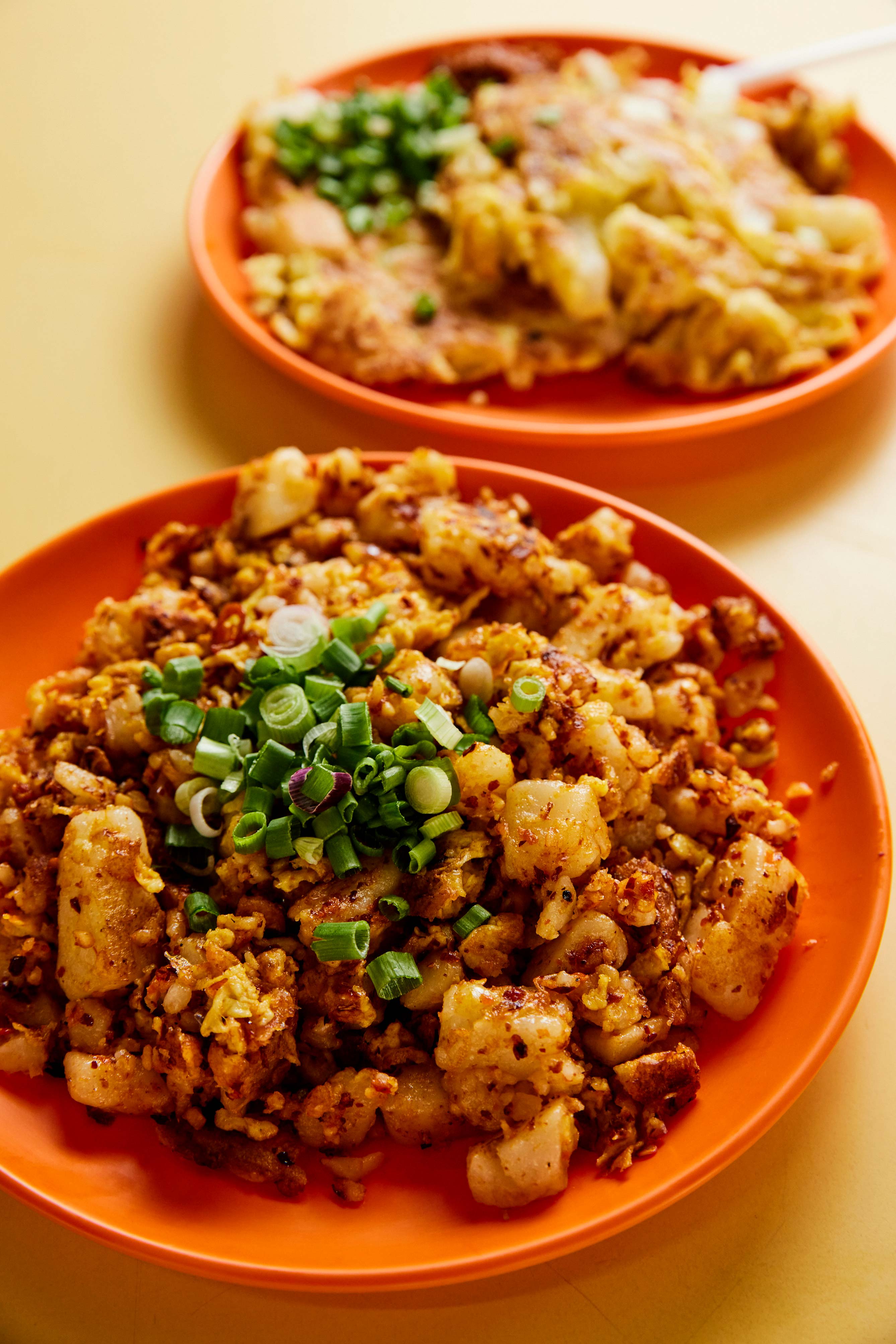 Qi Shan Carrot Cake at Cheng San Market & Cooked Food Centre looks just like any other carrot cake stall. It is helmed by a pair of Gen Z hawkers — Koh Ming Wei (left), 22, opened the shop last April after completing his National Service, and he is assisted by his sister Jing Hui (right), 24, who used to work as an assistant manager at a cinema. They offer both the traditional and modern versions of the dish – think white carrot cake fried with “Thai chilli flakes”, or topped with slices of torched cheese.