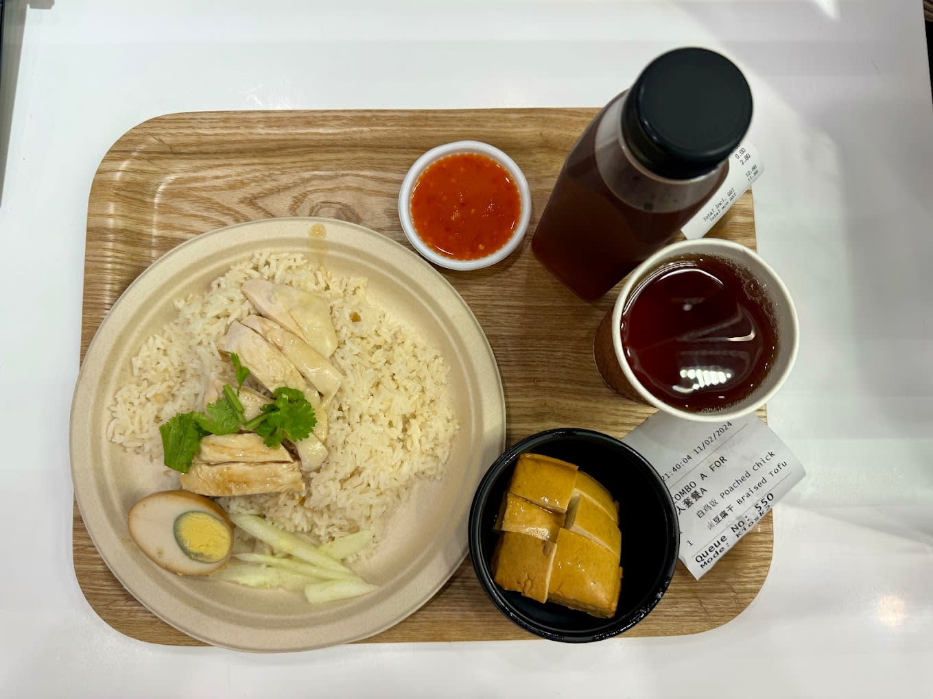 You can also order a Quarter Poached/Roasted Chicken ($10), Half Chicken ($16) and Whole Chicken ($30). There are also sides like Braised Egg ($1.20), Chicken Liver ($1.20) and Fried Chicken Wing ($3.60). The chicken rice is also available in combo set meals with a side dish and drink. But the food is now served on disposable plates instead of the melamineware that the kopitiam stall was previously using.