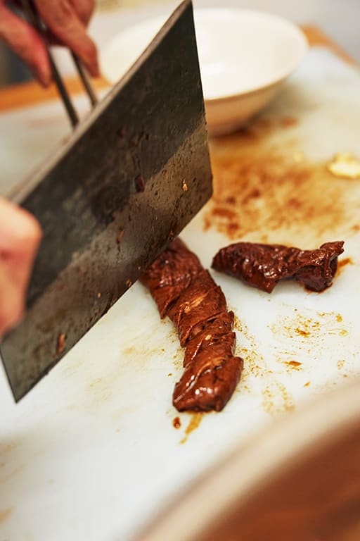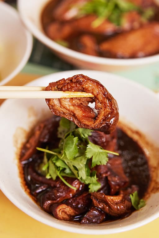 The same braise sauce is used for this innard dish, well-cleaned pig’s large intestine that’s cooked just long enough to be soft with a slight chewiness.