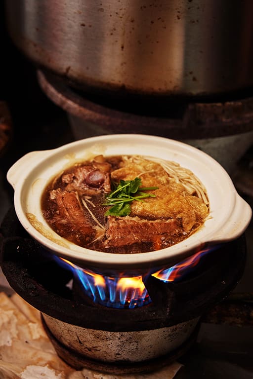 To come up with his herbal bak kut teh recipe, Jenere researched online and experimented extensively at home for a month. “I wouldn’t say I modified [the traditional] recipe, I just made it my own,” he says. His BKT is pretty similar to the one from famed Restoran Kota Zheng Zong in Johor Bahru, served in a claypot with pork ribs, sheets of fried beancurd skin and enoki mushrooms.