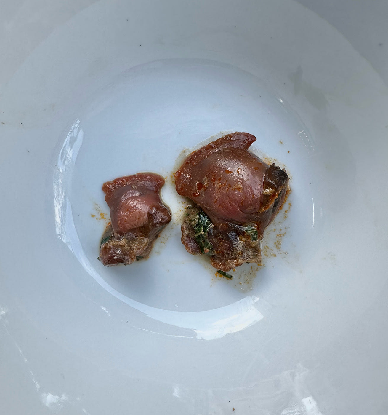 We compared the fat, meaty giant ‘hum’ to a typical laksa blood cockle and found it almost three times bigger.