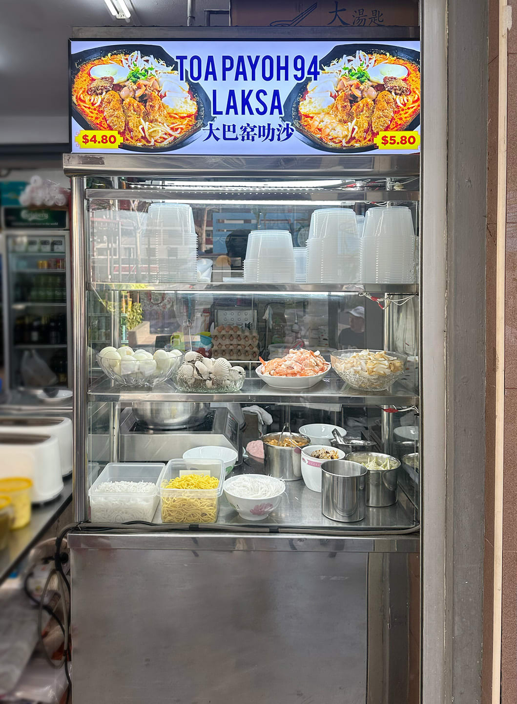 Toa Payoh 94 Laksa is at #01-30, Yi Hao Coffee Shop, 94 Lorong 4 Toa Payoh, S310094. Opens daily from 6.30am–2pm.