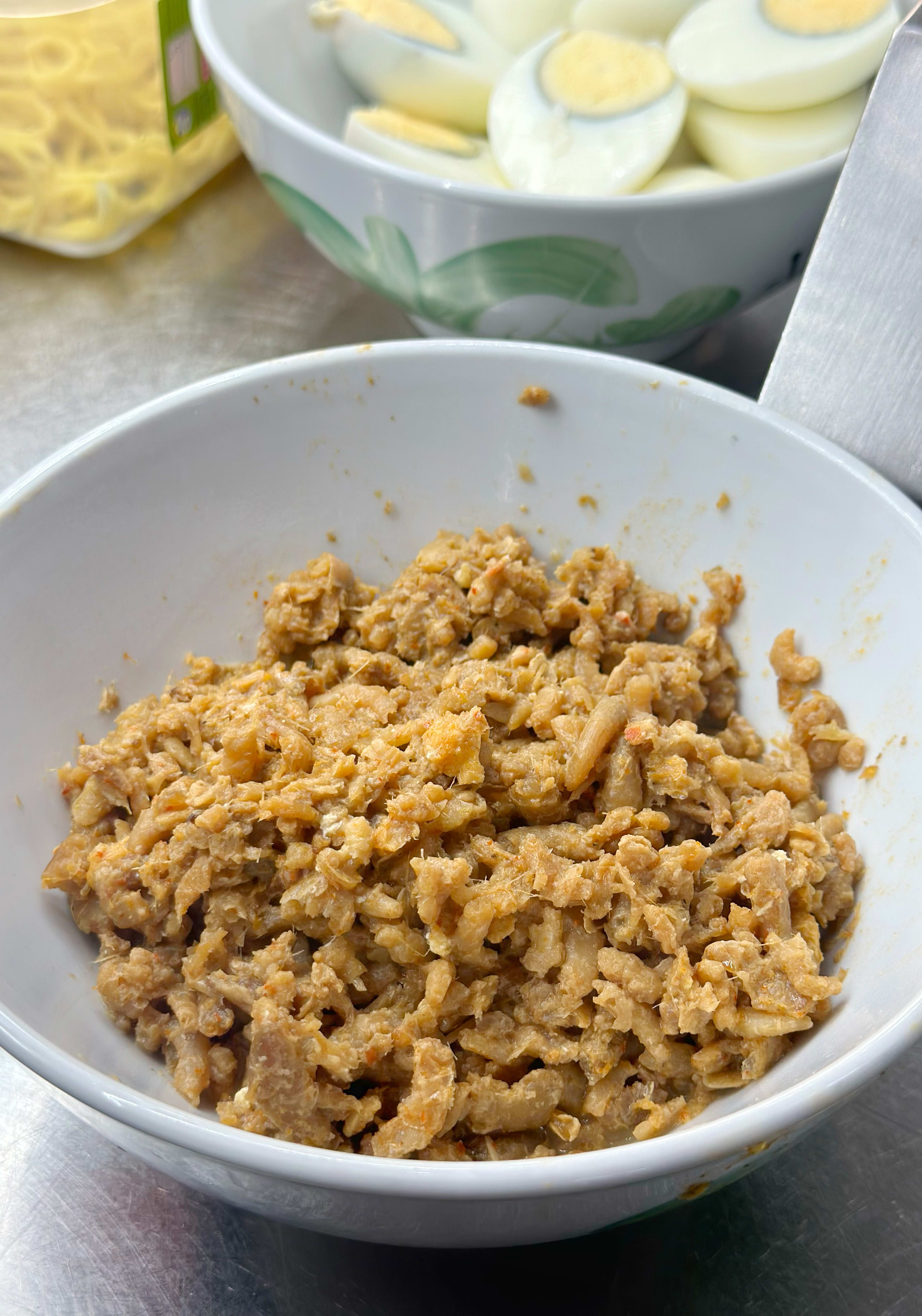 The dried shrimp topping, strained from the laksa gravy after cooking, is quite the brilliant addition. Not only does it amplify the flavour of the laksa, we also enjoy chewing on bits of hae bee with every mouthful. The stall is open from 6.30am, so you can enjoy this decadent dish for breakfast too.