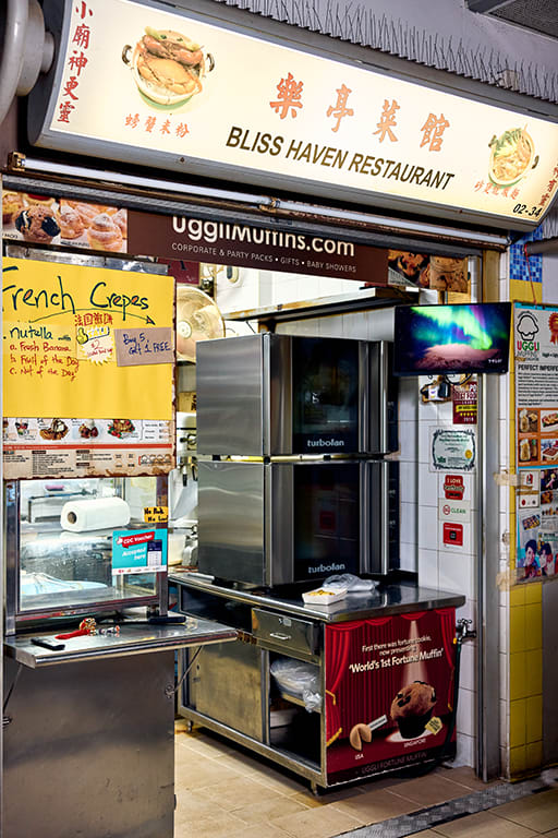 We have also never seen a hawker stall with three signboards. Anton’s mother had insisted that he “cannot touch” her Bliss Haven Restaurant signboard when he took over, and so his Uggli Muffins signboard was tacked on below. “If I add one more for crepes, I think my stall front will look a bit crowded,” he notes wryly.