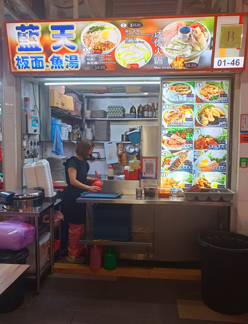 藍天板面魚湯 (Lan Tian Ban Mian Fish Soup) is at #01-46, Geylang Bahru Market and Food Centre, 69 Geylang Bahru, S330069. Open daily except Thu & Fri, 9am-8.30pm.