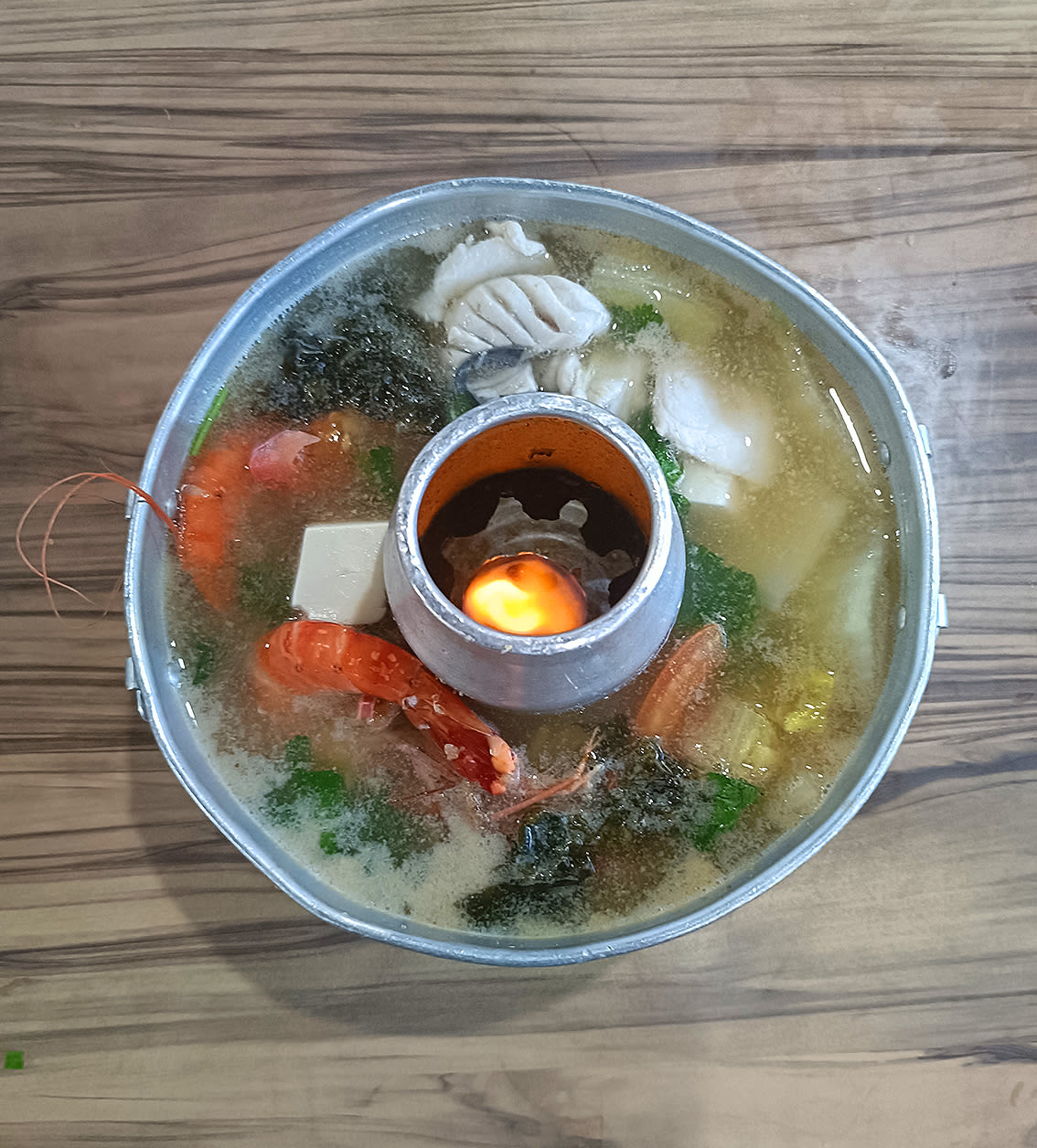 Rather than charcoal, the pot is heated with a tea light candle. Not exactly that traditional, but we were still thrilled to catch glimpses of the bright orange flame, which kept our soup piping hot throughout our meal.