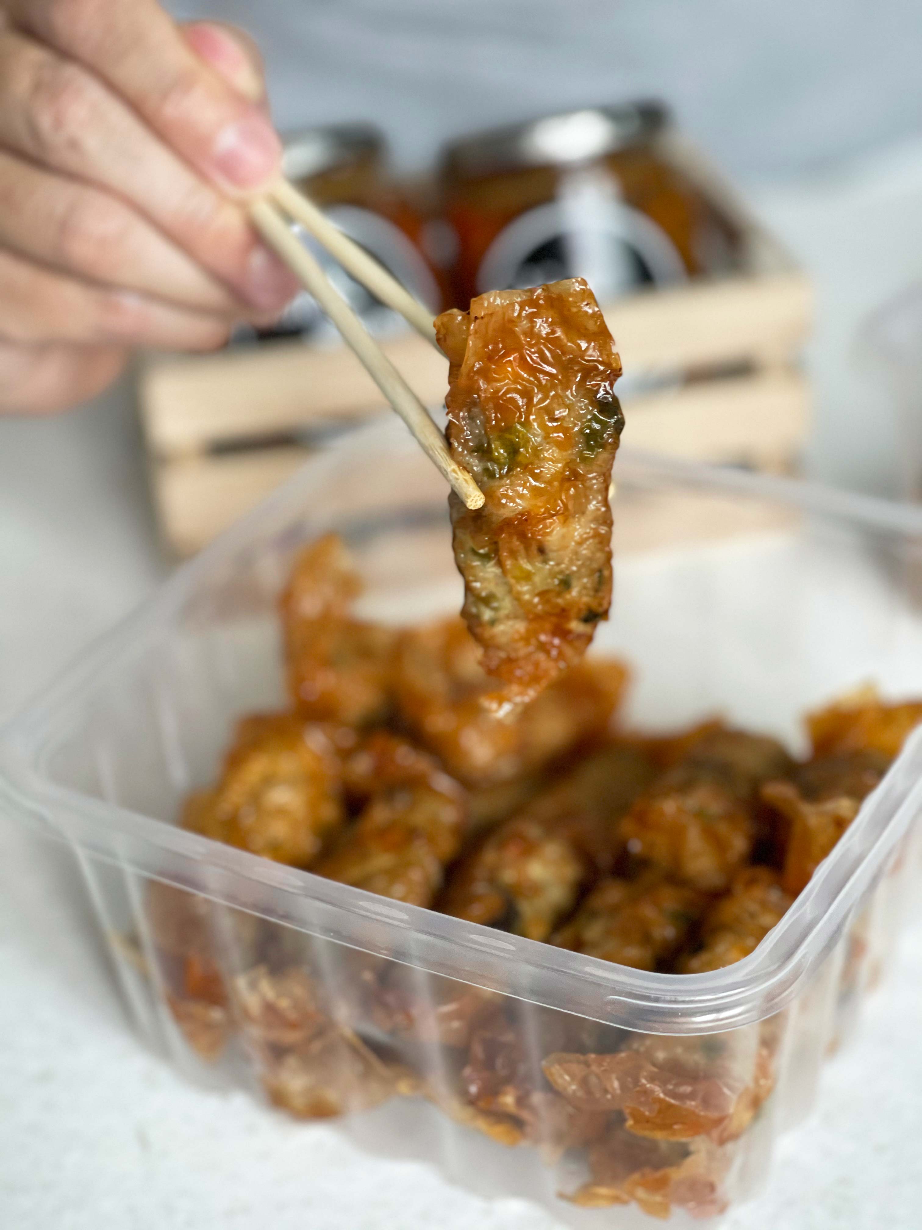 Interestingly, Shiok Shiok’s version does not include prawn in its filling — and we can tell because of the pork-heavy flavour and texture. “Our mum’s recipe does not use prawns as I’m allergic to seafood,” shares Helen. The personalised twist has won them unexpected fans, as they’ve received many orders from ngoh hiang lovers who are also allergic to prawns.