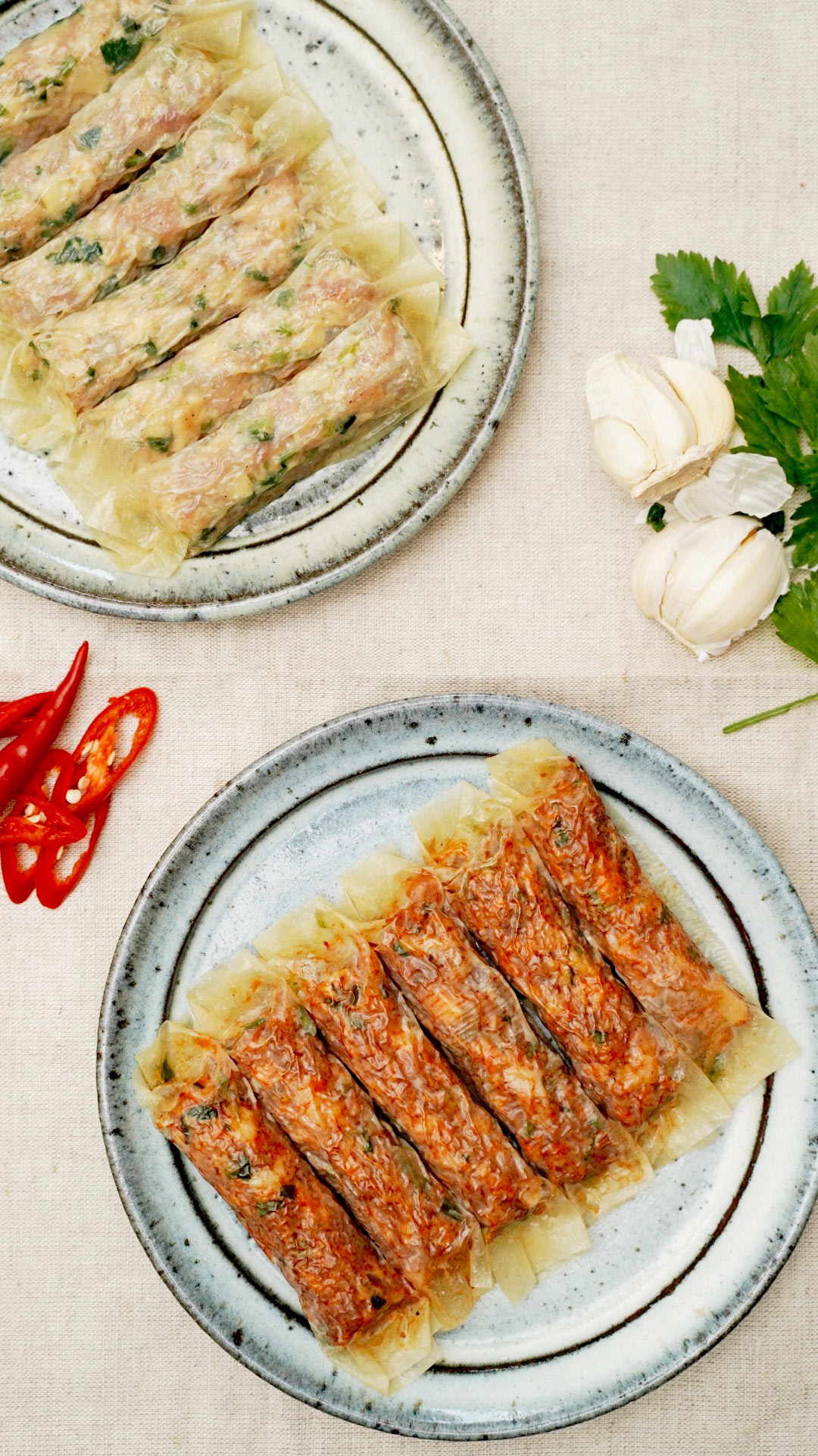Ellen’s version excludes the use of five-spice powder (even though ngoh hiang means “five spices” in Hokkien) as she doesn’t enjoy its taste. Another thing that sets Mum’s Ngoh Hiang apart is the use of a ‘special’ cut of pork for the filling that is “usually more expensive than normal minced pork”.