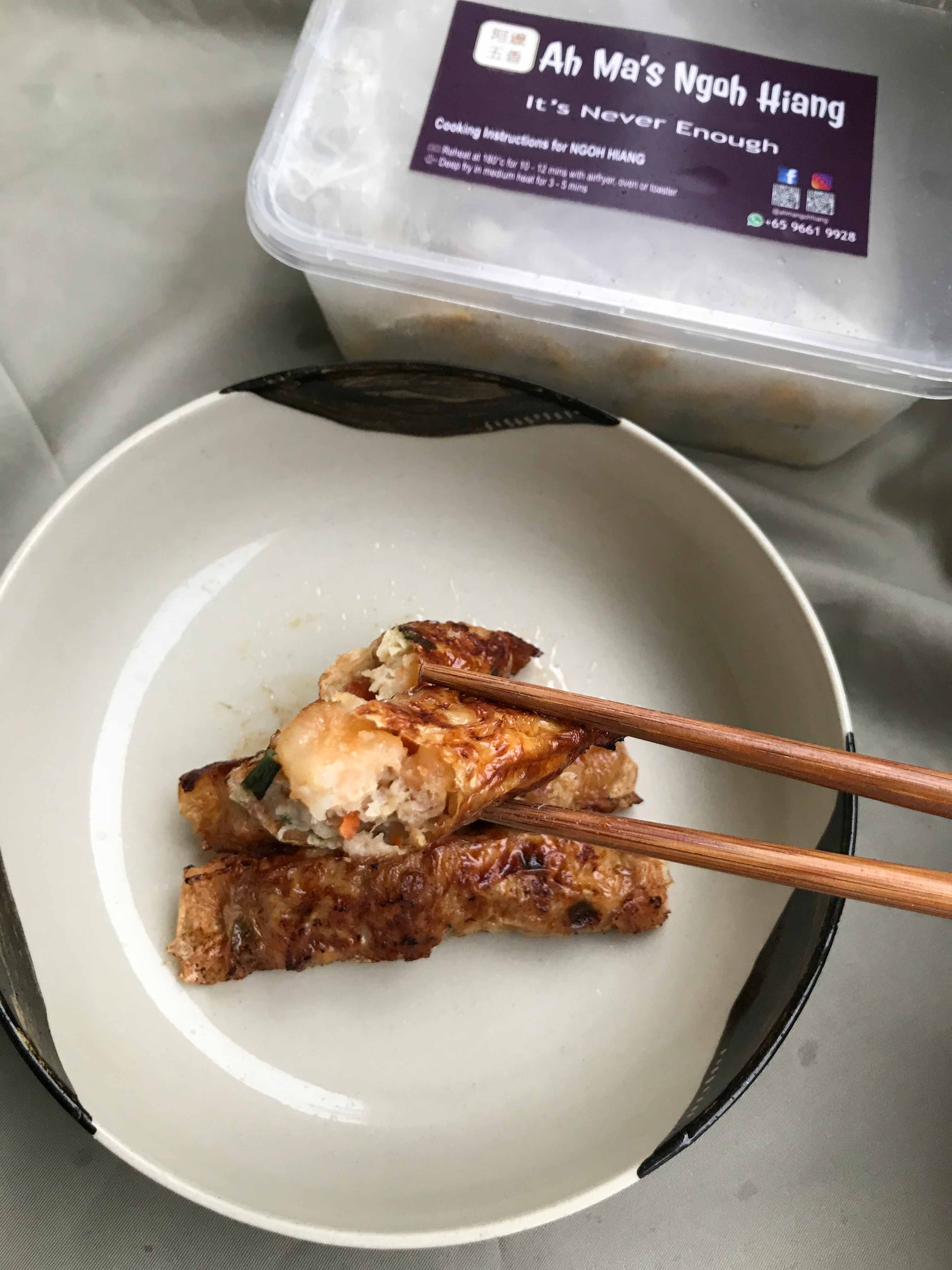 We also think its popularity is linked to scarcity — and the desire for home-cooked comfort food to stave off the blues that come with an unprecedented pandemic. Before the recent boom, many of us only get to enjoy homemade ngoh hiang that our mums and grandmas prepare during CNY or special meals, but with home-based businesses offering these labour-intensive treats on demand, of course customers will bite. We’ve chosen to feature 12 of the more popular HBB offering this deep-fried treat, and we tell you which are our faves.