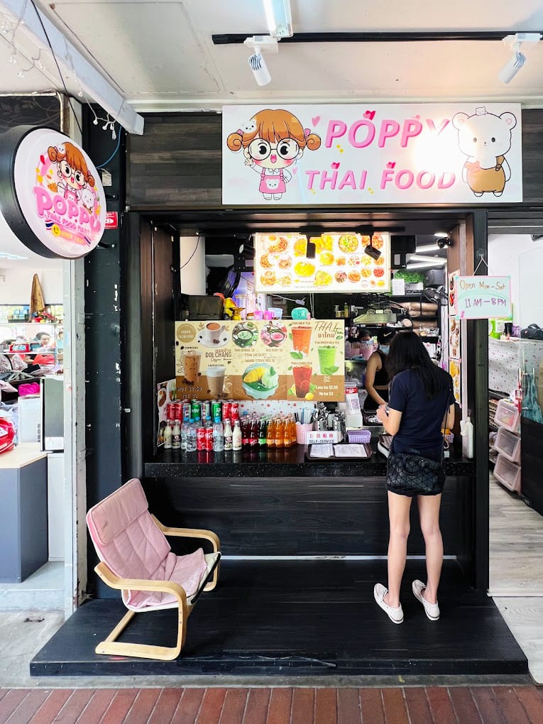 Amid a row of mom-and-pop shops beneath a HDB block in Ubi, Poppy Thai Food Mart stands out with its kawaii signboard decorated with cutesy mascots. The cartoon drawing of a lass is of the store’s chirpy Thai owner (she declines to be named for this story), who mans the joint with her Singaporean husband and two staff.