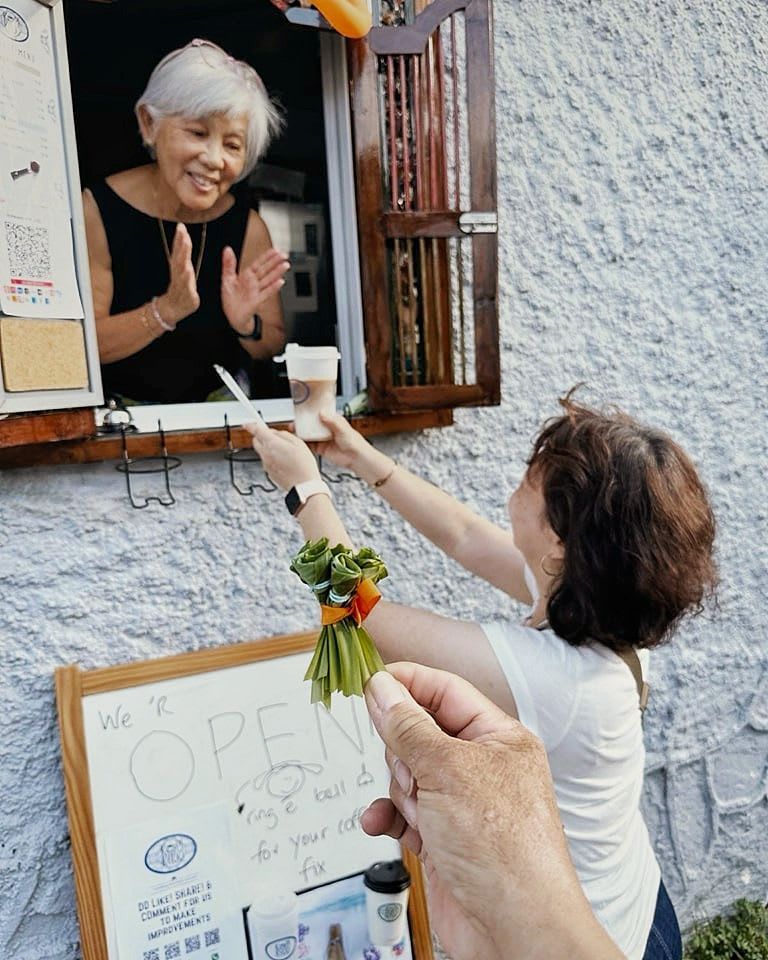The lady in the window is chatty 73-year-old, Paulin Khoo, who serves artisanal coffee from her home kitchen.