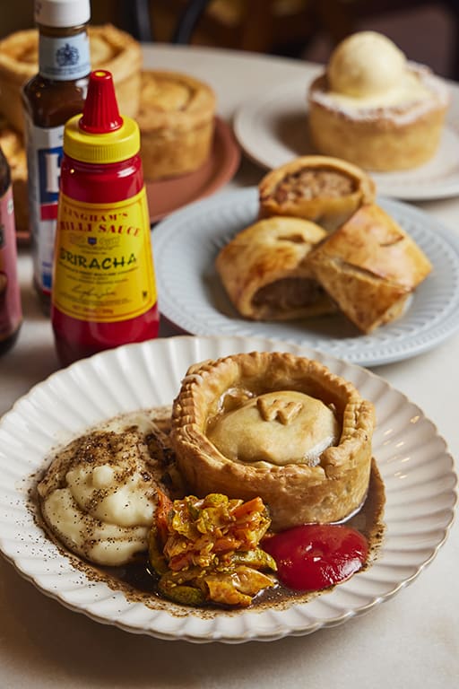 We recommend dining in for these pies. Neil passes us a quaint pot filled with bottles of good sauces — Lingham’s sriracha chilli sauce, the classic British HP brown sauce, tamarind chutney and Heinz’s ketchup — to add to the pies. “That’s how we eat it in the UK,” he explains.