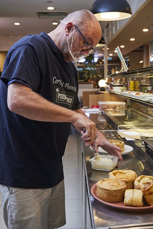 “I grew up with minced beef and onion pies, sausage rolls, cheese pasties, steak and kidney pies,” he says. While he can make a classic steak and kidney pie upon request, Neil says it’s much less popular here. “It’s one of the nicest pies, it has got a lovely flavour,” he shares.