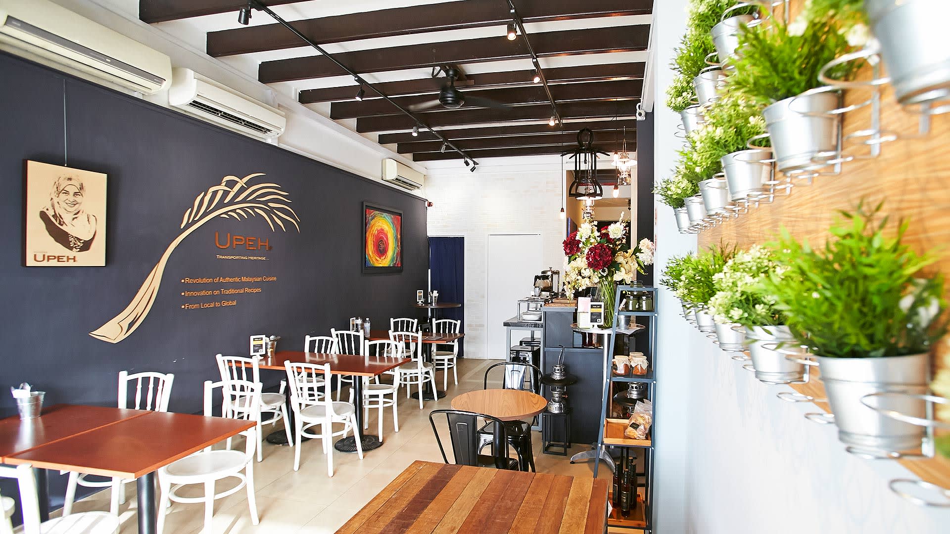 Upeh cafe serves unique Kelantanese food and modern Malaysian durian desserts in a hip setting.