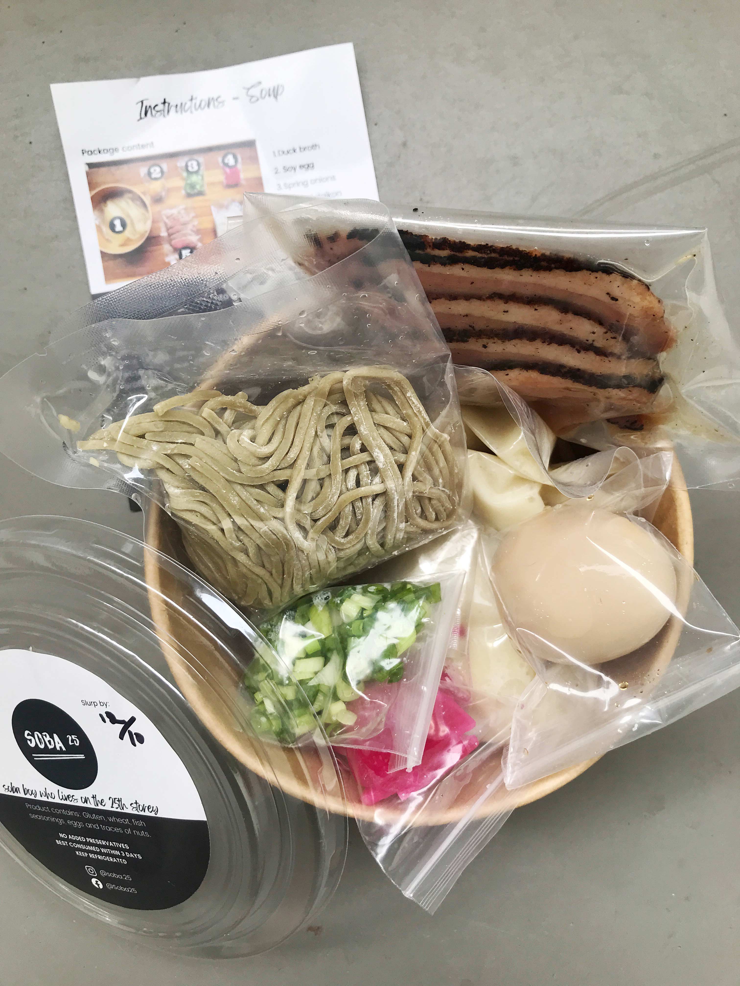 All kits come with pre-packaged ingredients and detailed cooking instructions, and can last for up to three days. Everything is made from scratch from Hubert’s five-room flat in Jurong East — located on the 25th storey, hence Soba25's name.