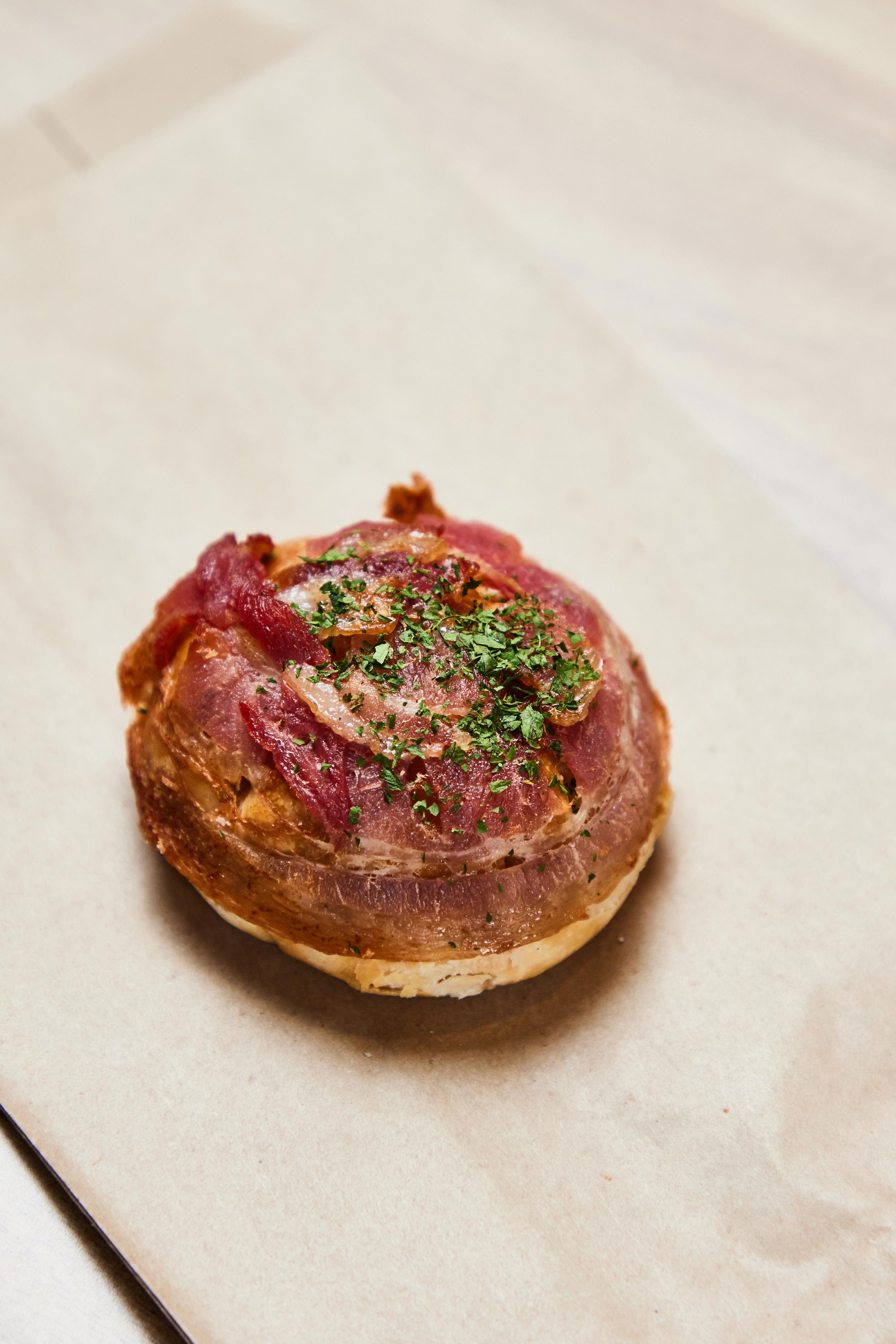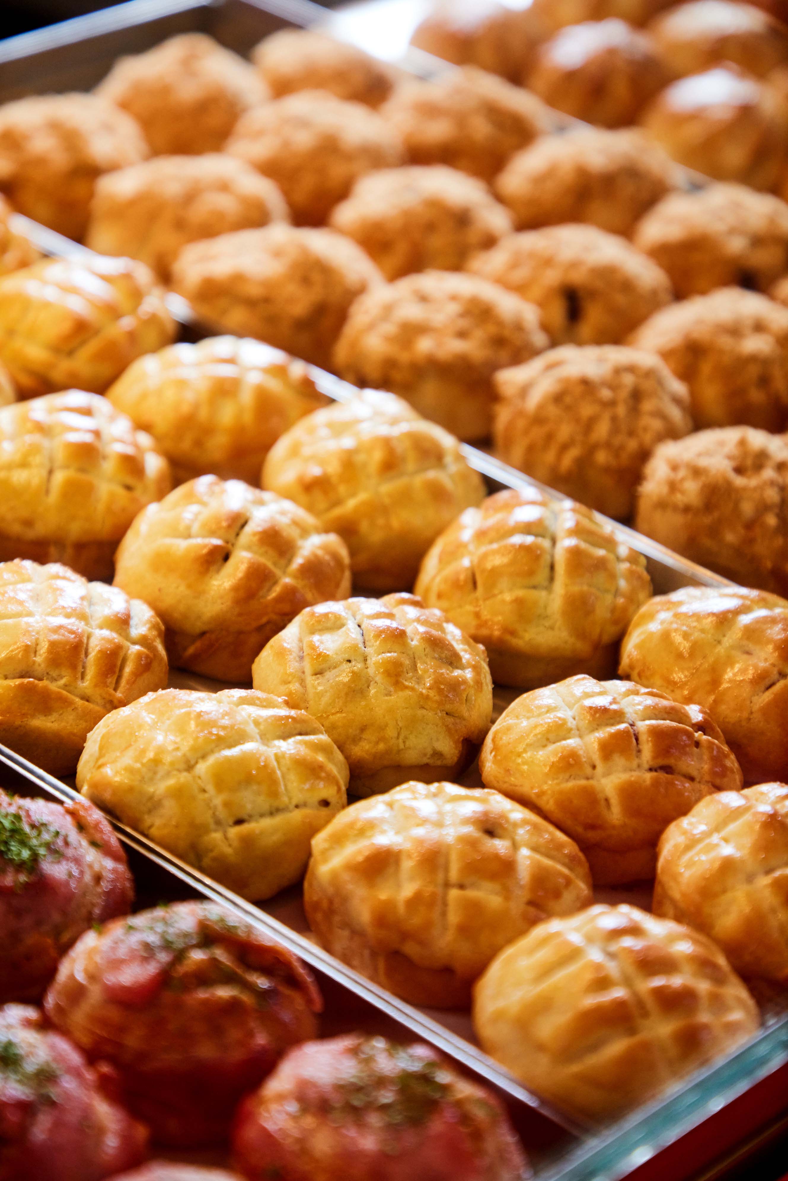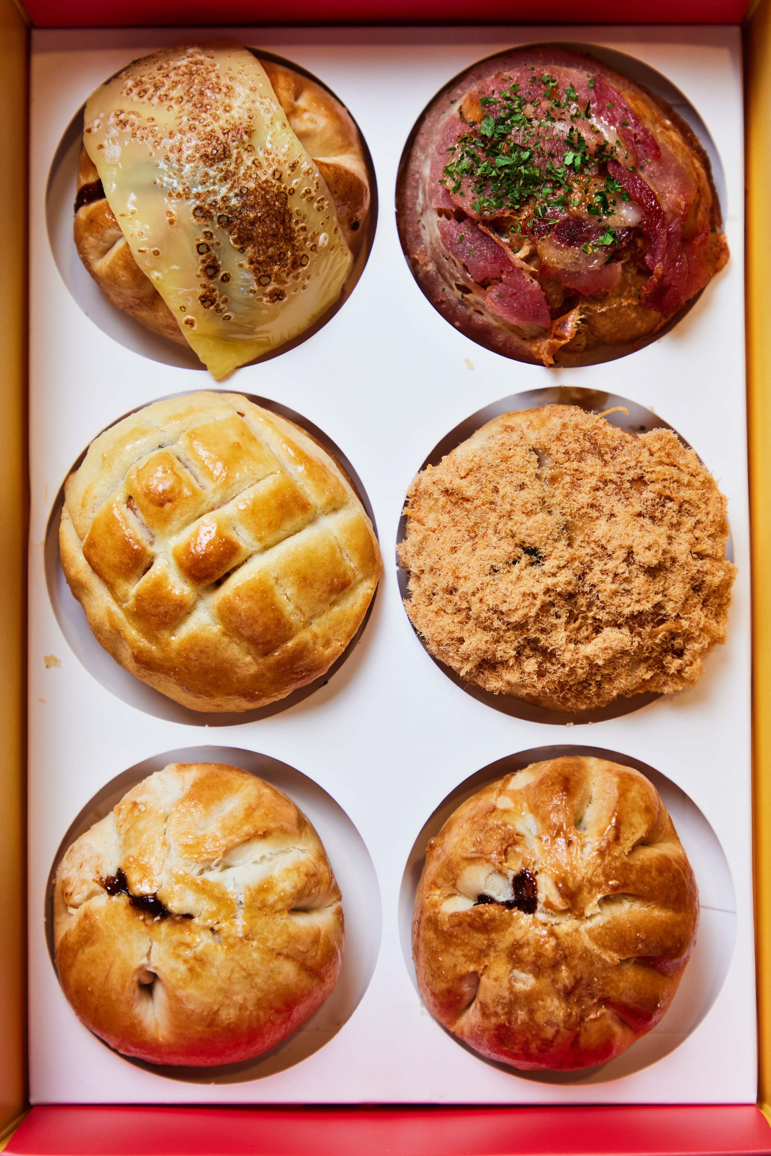 The crispy baked pork buns, similar to char siew sou, are also available with mod toppings like bacon at Mr Shao Bao.