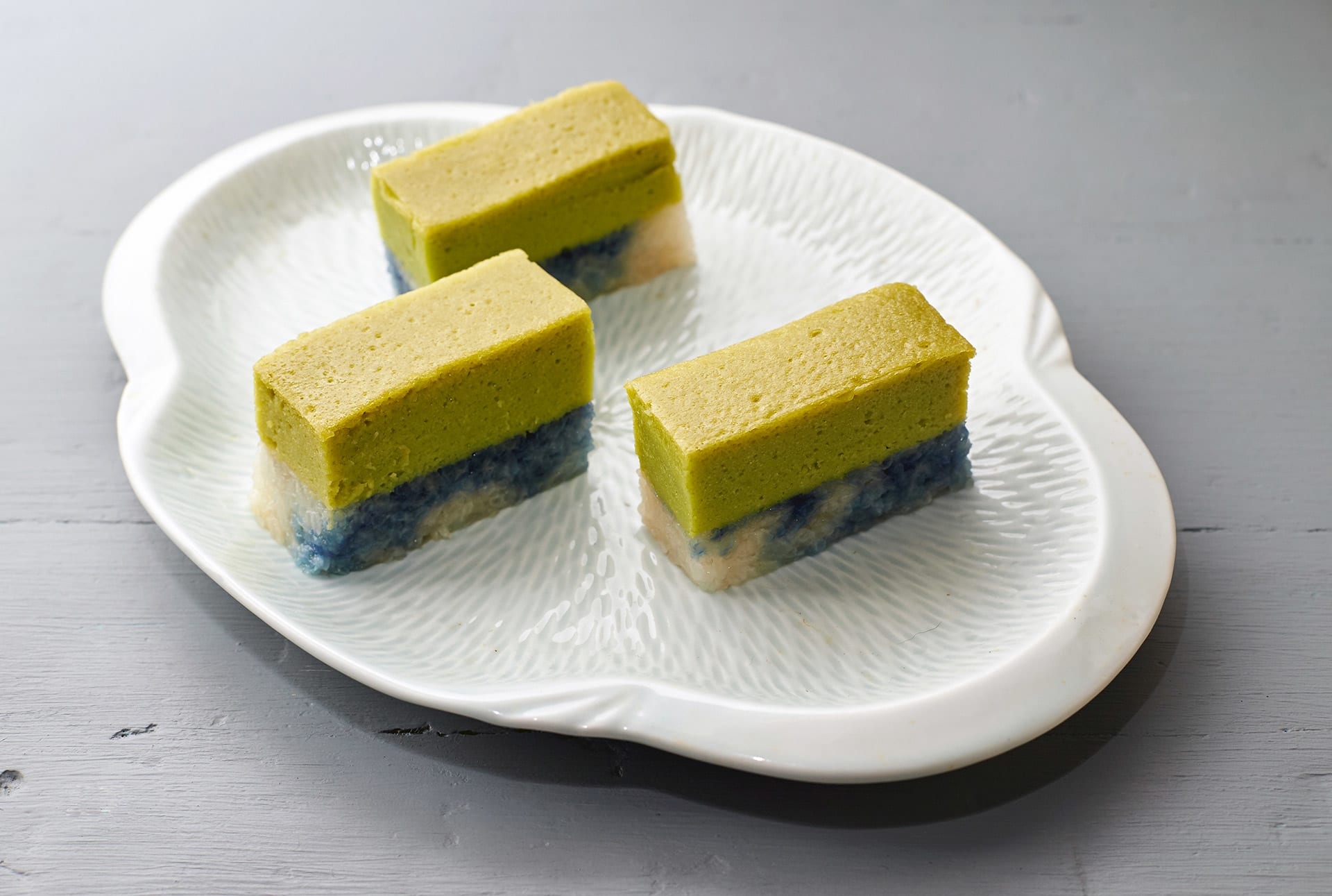 The first kueh Keith made was kueh salat, that notoriously difficult-to-get-right Peranakan kueh comprising a layer of compressed glutinous rice stained blue with butterfly pea flowers beneath a jade-hued layer of custardy seri kaya or pandan-infused coconut milk-and-egg jam. It took him four attempts before he was happy with the results. “It was frustrating, but one recipe led to another and that’s how I started making kueh,” he said.