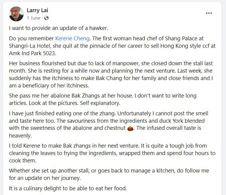 After Closing Cheong Fan Paradise Hawker Stall, Ex-Shangri-La Chef Sells Bak Chang From Home