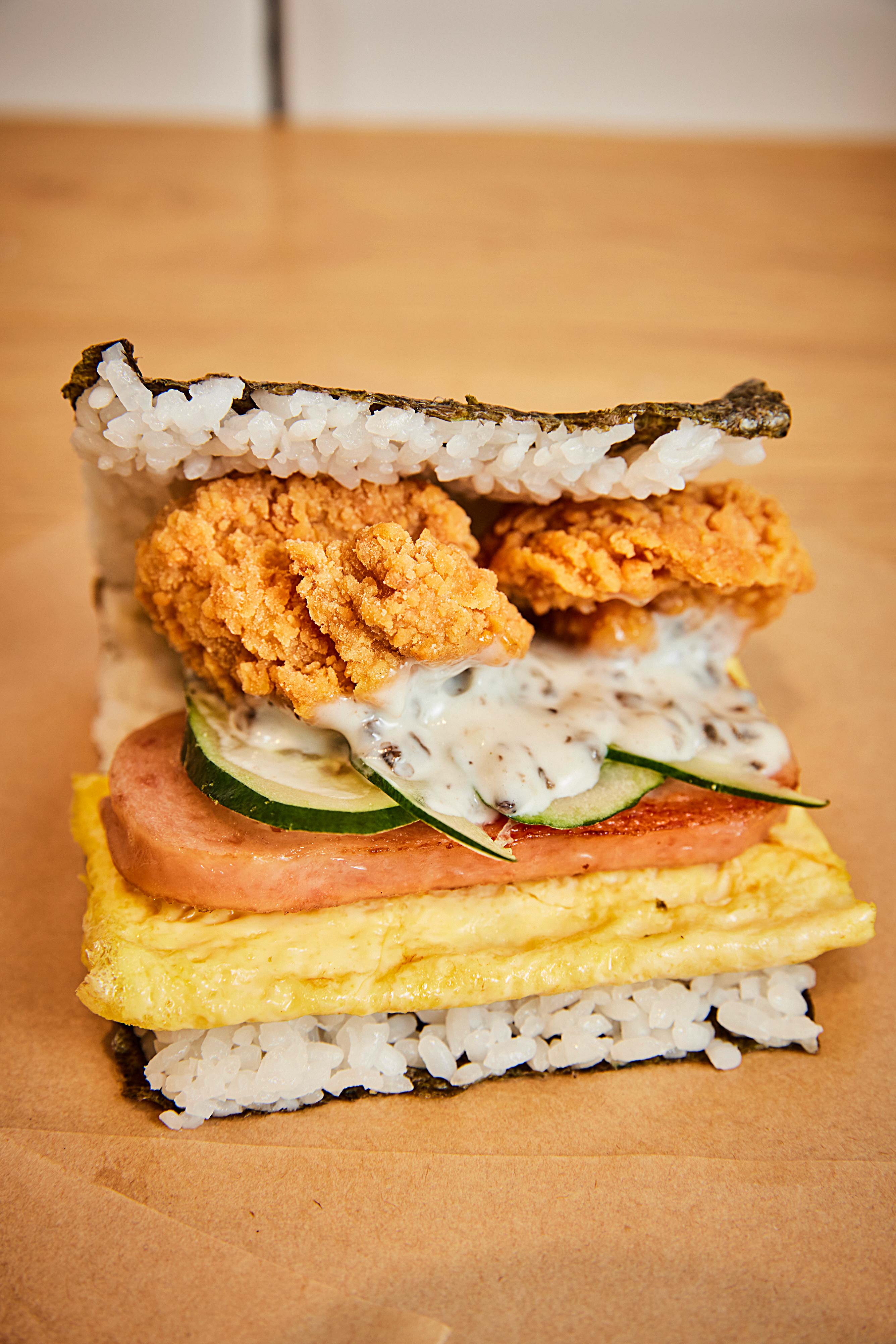 But instead of a round or triangular shape that’s typical for onigiri, Mr Onigiri’s “Okinawa-inspired” version resembles musubi, the seaweed-wrapped rice sandwich that’s popular in Okinawa and Hawaii. Each ‘onigiri’ here comes with a meaty filling such as Spam, chicken katsu or pan-seared Muar otah, all wrapped in a thin layer of rice and crispy Japanese seaweed.