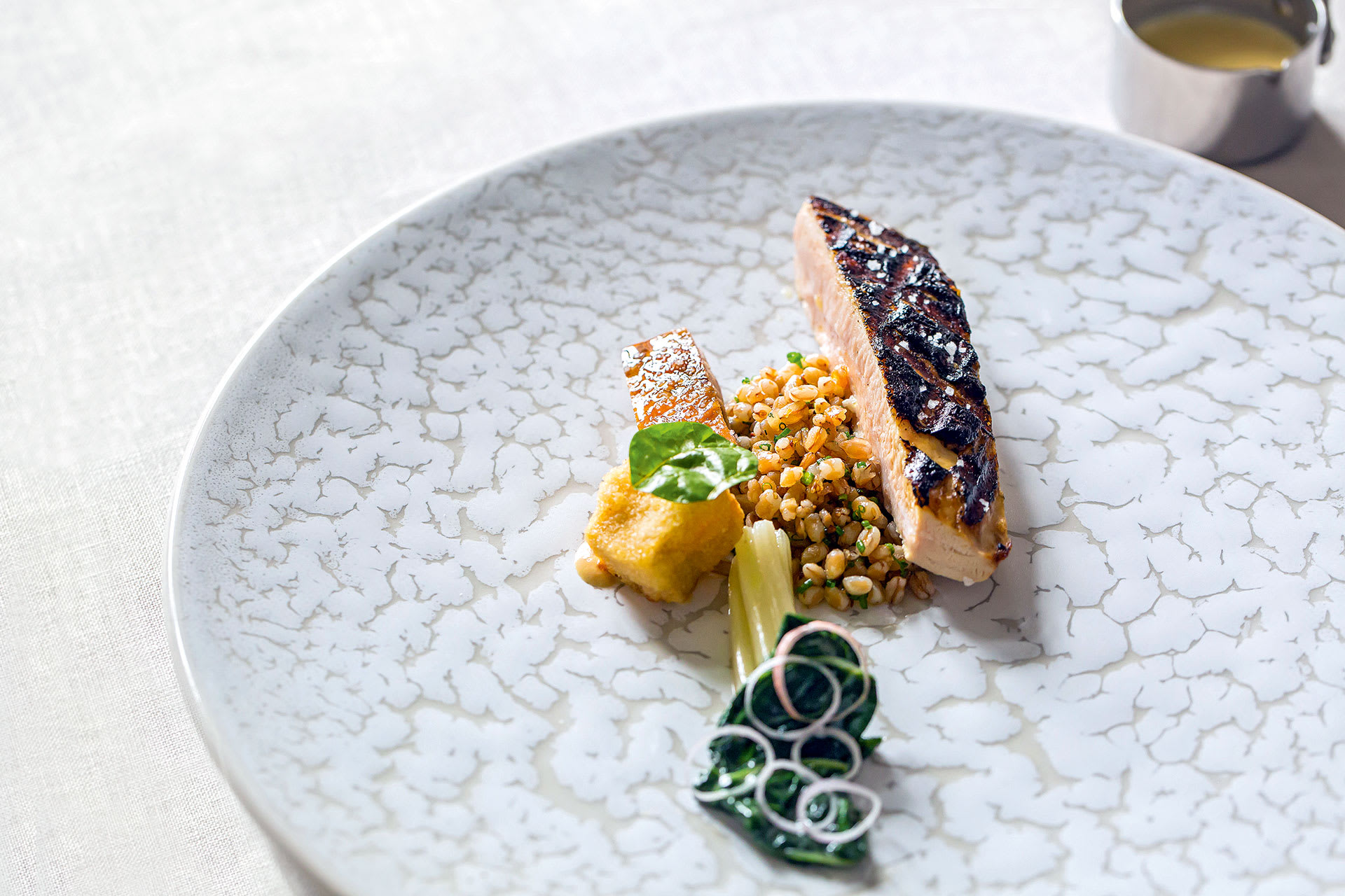 “My socialite tai-tai friends tell me that dining at Odette is the meal of the year,” says a journalist we bump into at the fortnight-old modern French restaurant in the newly revamped National Gallery Singapore. Well, the space is something special. As we swan past the foyer of the museum crowded with families and into the 32-seater, we are instantly transported to the kind of dining room one encounters in a Michelin-starred establishment in Paris. But less stuffy, and fresher. Odette is the hotly anticipated collaboration between former Jaan chef Julien Royer and Wee Teng Wen of The Lo & Behold Group. Of course, it's full this Saturday afternoon. As we’re ushered to our cosy banquette seat clad in velvety grey, we’re greeted by genial, young head sommelier Vincent Tan, whom we recognise from his days at rustic French tavern Shelter in the Woods. He’s all grown up now and smartly dressed in a grey suit instead of an apron.