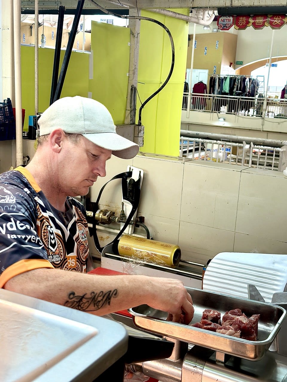 Clad in his Australian Wests Tigers rugby jersey, Adam is an unusual sight at a Toa Payoh pasar. But he doesn’t mind his customers giving him the affectionate nickname of “ang moh butcher”. As his wife Ann put it: “It gives us a selling point, being Singapore's first ang moh wet market butcher. ’Cos people would know which stall you’re talking about if you say, ‘Go buy from the ang moh butcher’.”