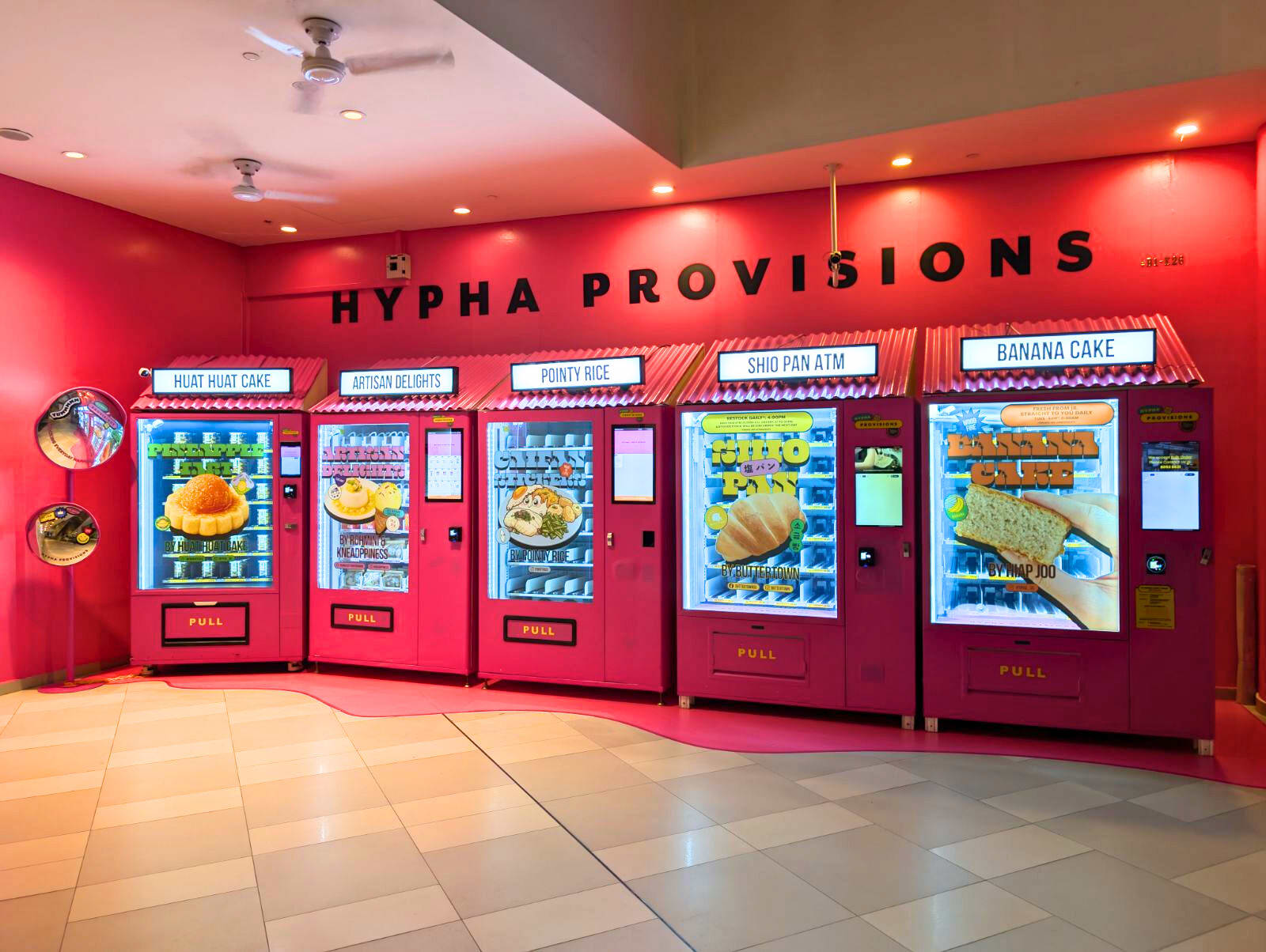 Hypha Provisions vending machines are at #B1-K2 Our Tampines Hub, Festive Mall (beside Escalator Landing at Lobby B), 1 Tampines Walk, S528523. Available 24 hours daily.