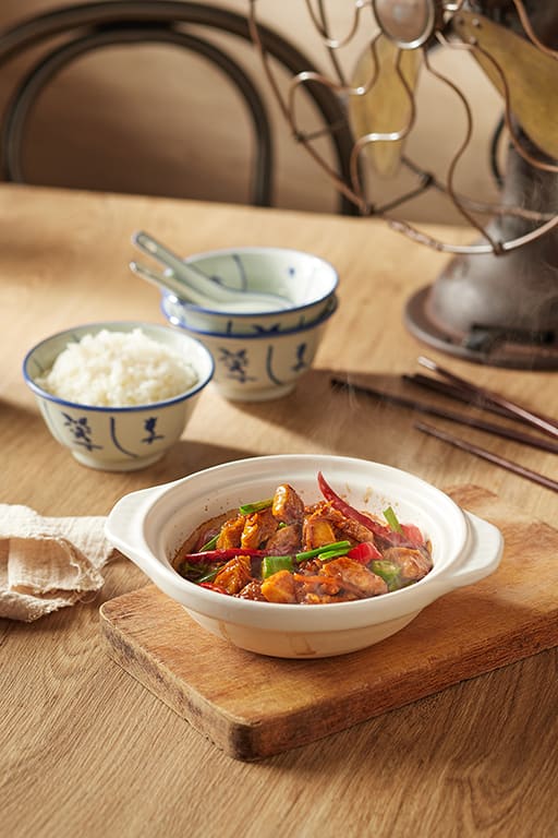 Besides kway chap, the restaurant also serves a Braised Duck Rice Set ($5.90; $7.20 for a set) with yam rice, as well as communal-style claypot dishes like Claypot Spicy Chicken (pictured, $8.80), Claypot Spicy Pork Ribs ($9.90) and Claypot Sesame Oil Pig’s Liver ($7.50).