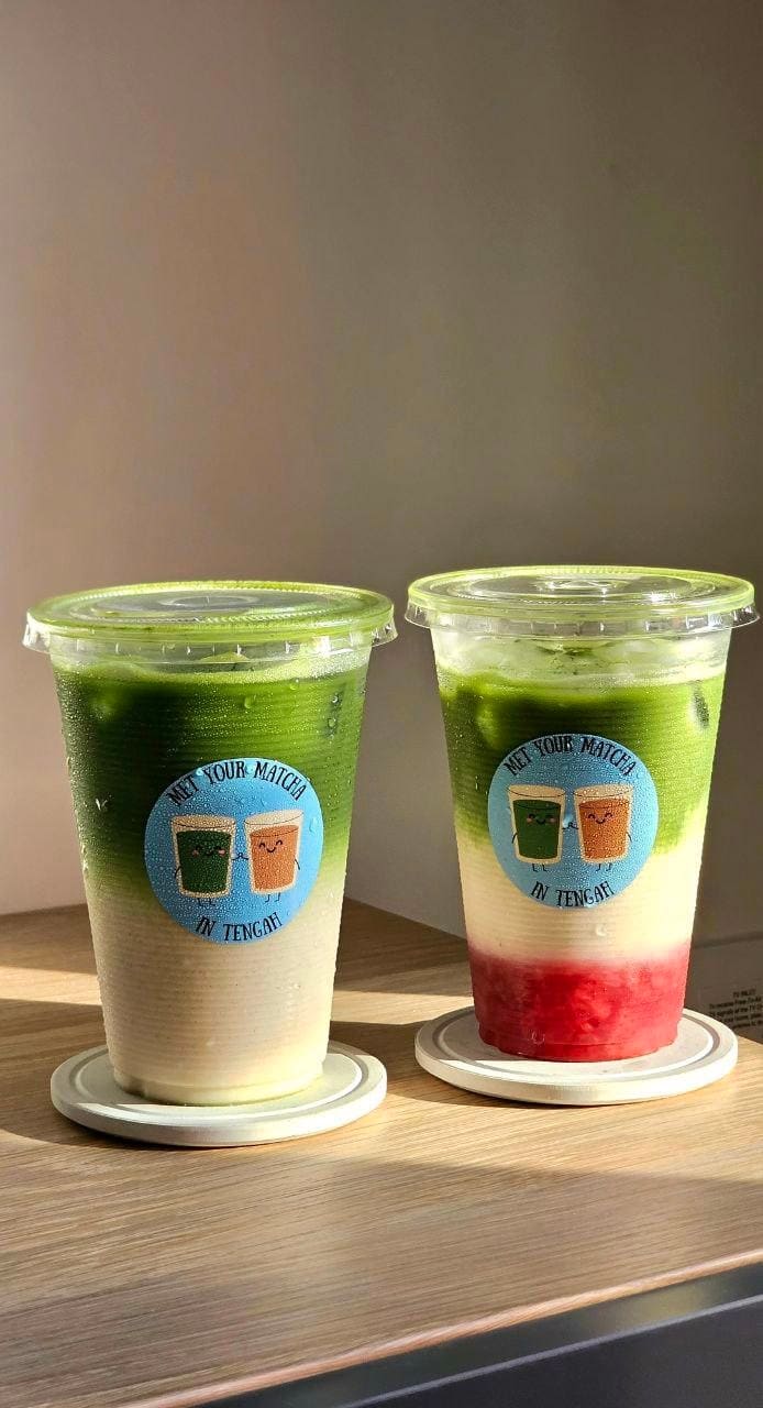 Met Your Matcha’s strawberry matcha (right) with house-made compote