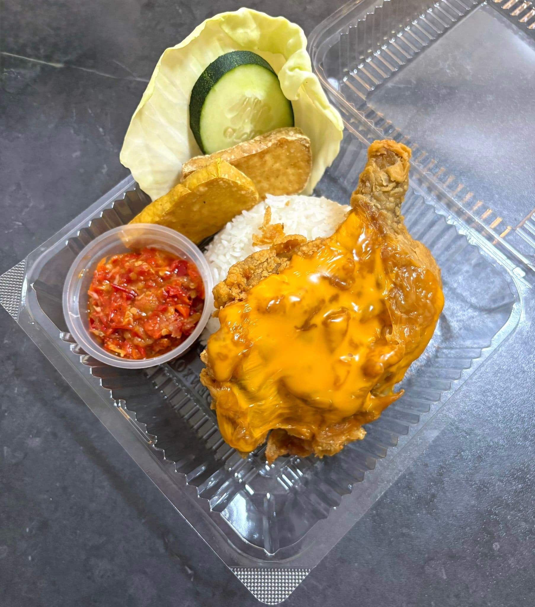 On the menu are fusion dishes like Ayam Geprek Cheese($8.50), a rice set with battered fried chicken (geprek means ‘smashed’ in Javanese) topped with melted cheddar, served with sambal.