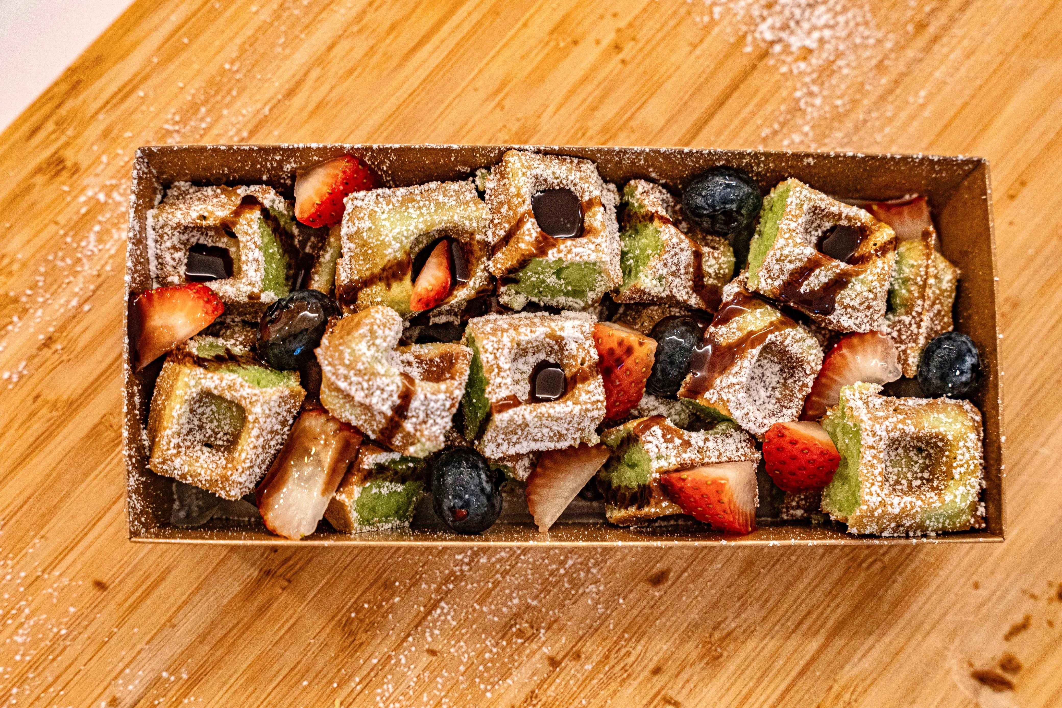 They even serve house-made snacks like Original Pandan Waffle Sticks ($4.90) with a peanut butter or Nutella dip, and Junior Wafu ($5.90), pandan waffle cubes topped with fresh berries.