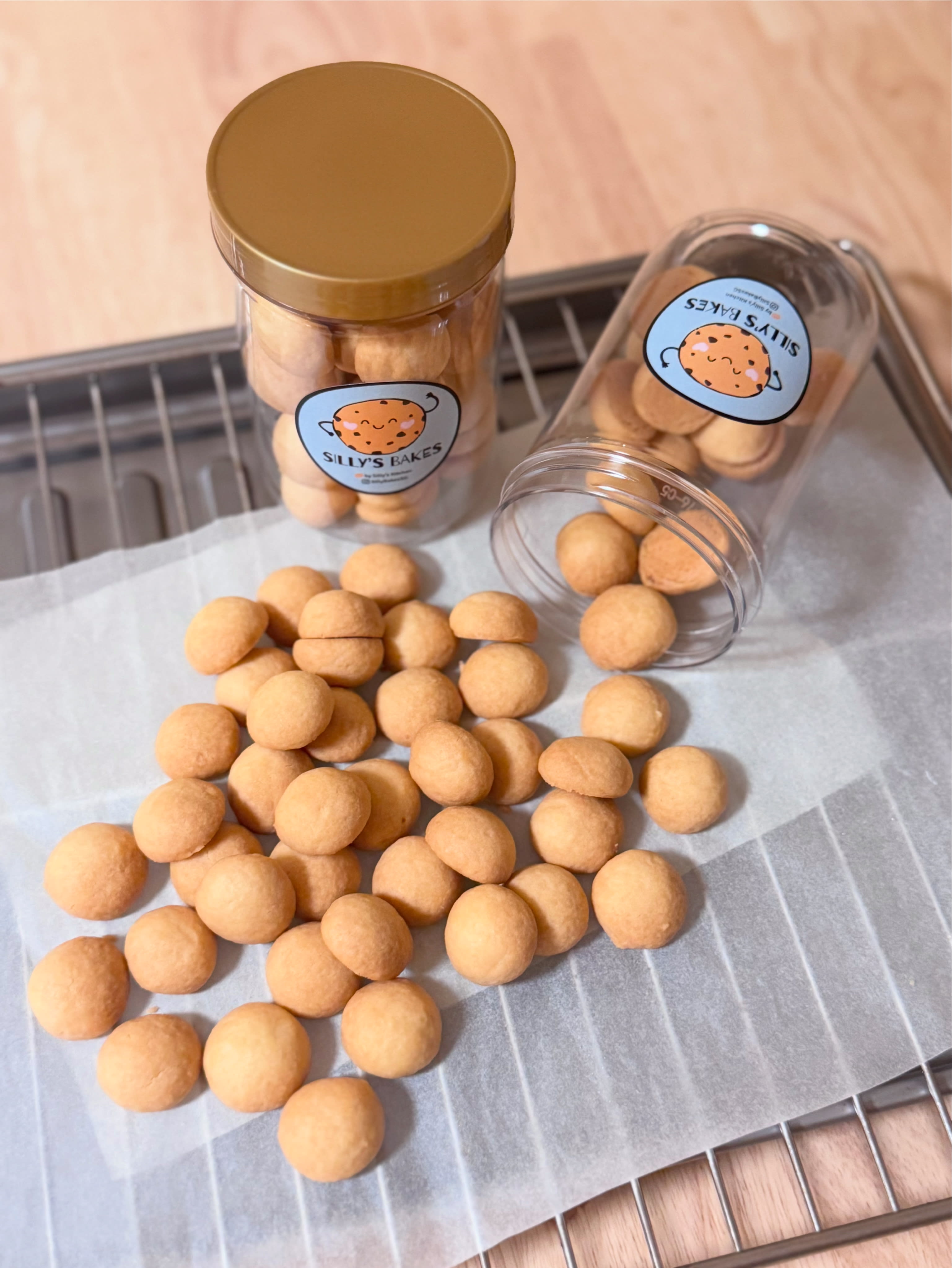 A self-proclaimed “0% sugar bubble tea girlie”, her bakes are all low in sugar, preservative-free, and made fresh to order. The menu is small but distinctive, featuring butter cookies in flavours like Pure Butter, which she says is “quite similar” to famous HK brand Jenny Bakery’s, and the bestselling Sea Salt Double Chocolate, made with Hershey’s cocoa powder and cacao nibs for extra crunch. Prices start from $8 for a bag (about 18 cookies) to $15 for a bottle (about 40 cookies).