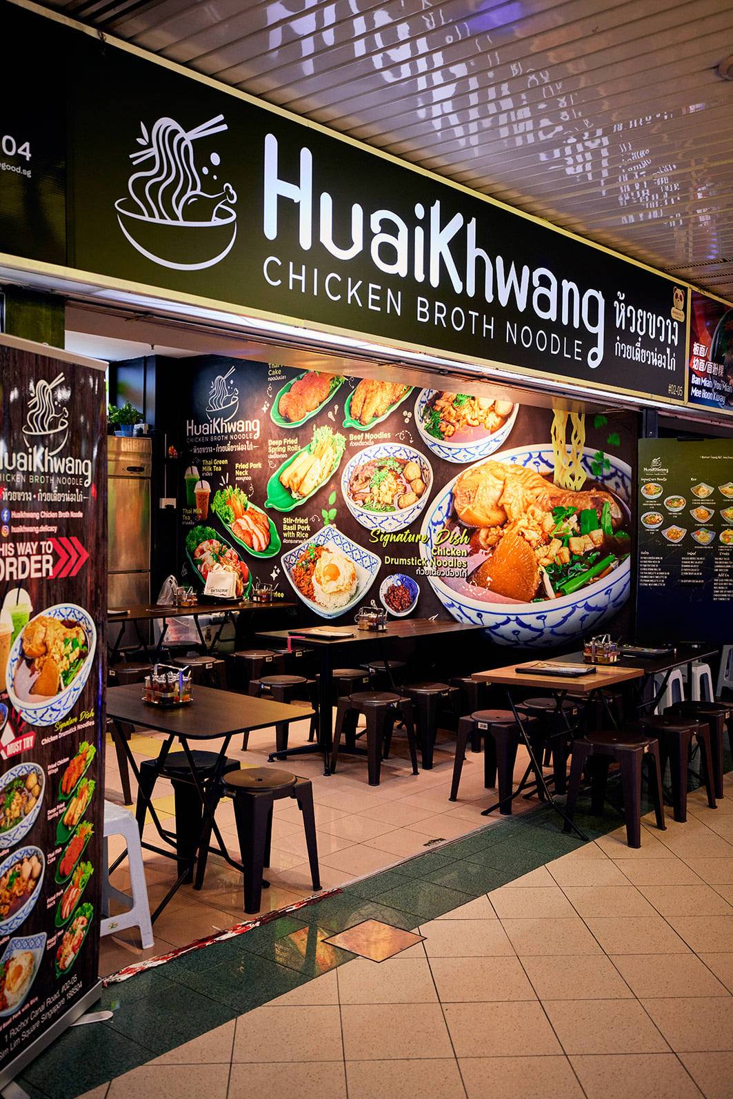 Opened last September at Sim Lim Square, HuaiKhwang Chicken Broth Noodle is a snug eatery that specialises in a lesser-known style of Thai noodle soup in Singapore. Their star dish features a dark, flavourful chicken-based broth (that looks and tastes similar to boat noodle soup – more on that later), rice vermicelli and a braised chicken drumstick.