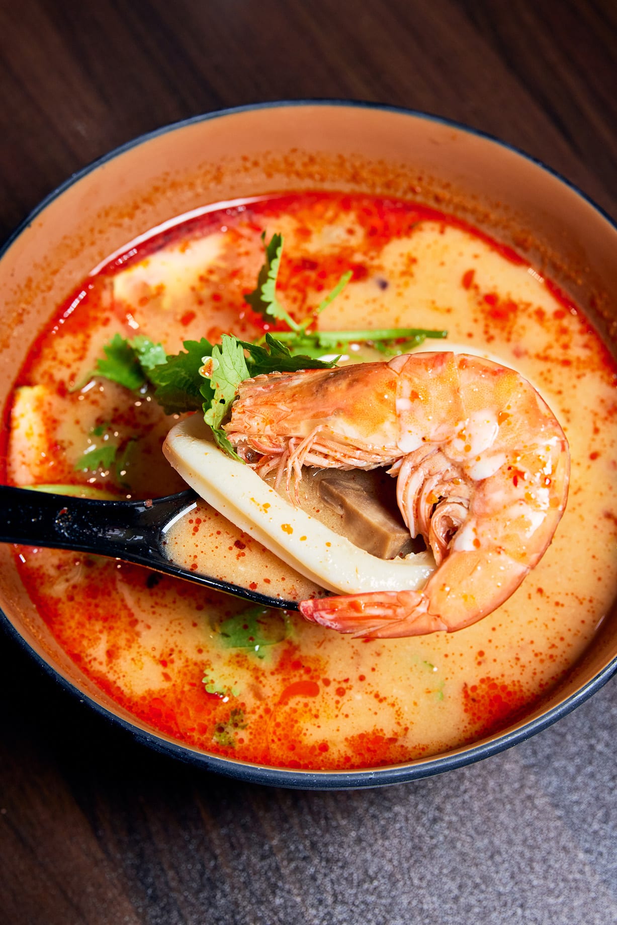 The husband and wife, both aged 40, make a yummy rendition of this Thai dish that tastes like a lighter version of boat noodles.